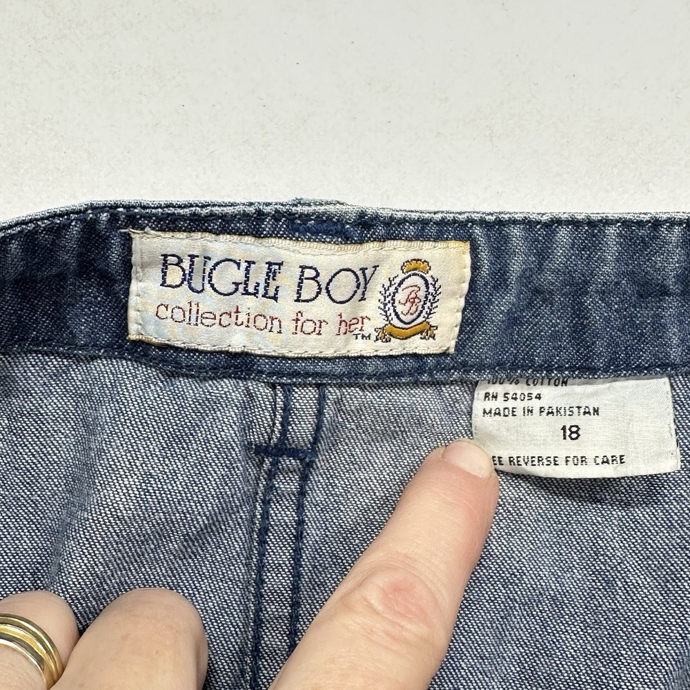 This vintage Bugle Boy denim skirt brings classic retro style with sturdy blue denim, a flattering high-rise fit, and timeless everyday wear appeal. The size 18 fit offers comfort and structure, perfect for pairing with tees, sweaters, or Y2K-inspired looks. A great throwback piece from a beloved heritage brand. Buying = Giving — every purchase helps support community programs.