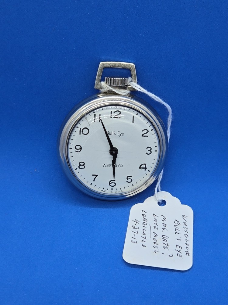 Absolutely love this vintage Bull's Eye pocket watch! The classic silver case and bold white dial with large numerals make it easy to read. Though there's a small crack in the crystal and the back doesn’t snap fully, it keeps perfect time. The mechanical movement feels authentic, and the retro charm is unmatched. A fantastic piece for collectors or anyone who appreciates timeless style. Works like a dream!