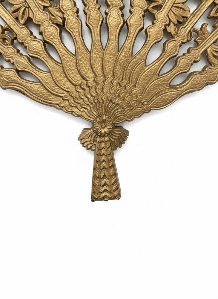 1-Column Ebay Template dewiso.com Vintage Burwood Hollywood Regency Gold Fan Wall Art - 43x26 in Mid-Century Modern Ornate Filigree Own a Piece of American Design History - Stunning XL Vintage Burwood Fan Command attention with this magnificent vintage Burwood Products Co. ornate gold fan wall hanging. A breathtaking example of 1960s Hollywood Regency glamour , this 43-inch statement piece features intricate filigree detail that brings instant vintage sophistication to any space.As Burwood ceased operations in 1997, this represents a finite piece of collectible American artistry . Key Features & Details: 🌟 MUSEUM-QUALITY COLLECTIBLE: This is not a modern reproduction. This is an authentic, extra-large (43-inch) Burwood fan (Model #4402) from the peak of Mid-Century Modern design, representing a lost American manufacturing era. ✨ INTRICATE FILIGREE DESIGN: The breathtakingly detailed scrollwork and floral motifs capture the essence of Hollywood Regency glamour. This piece serves as a dramatic focal point above a mantel, sofa, or headboard. 💪 DURABLE BURWOOD CONSTRUCTION: Crafted from the proprietary Burwood composite—a blend of wood pulp and plastic—this piece is remarkably lightweight yet sturdy, with fine details that have stood the test of time. 🏠VERSATILE DECOR STATEMENT: The antique gold finish seamlessly complements Mid-Century Modern, Bohemian, Spanish Revival, or Glam decor styles. It can also be easily repainted to match any color scheme. ✅ EXCELLENT VINTAGE CONDITION: Preserved with remarkable care, this piece shows minimal wear consistent with its age. There are no chips, cracks, or missing elements—a true testament to its quality. Detailed Specifications: Width: 43 inches Height: 26.5 inches Depth: 0.5 inches Weight: 4 lbs The Burwood Legacy: Burwood Products Co. was a renowned American manufacturer based in Traverse City, Michigan, celebrated for creating detailed decorative items using their unique, durable composite material. The company's closure in 1997 makes every authentic Burwood piece a cherished collectible. Why Buy From Us: We specialize in vintage decor and understand the value of preserving design history. This stunning fan has been carefully stored and is presented with complete honesty about its condition. Authentic, large-scale Burwood pieces of this caliber are increasingly difficult to find. Add to Cart Now to own this spectacular piece of vintage American art! Shipping within 1-2 days. Please contact if you have a question! 🗽LV Antiques: Vintage & Liquidation Emporium🗽 Your trusted source for curated antiques, vintage finds & liquidation deals. Bringing historical charm and modern convenience together - one treasure at a time.