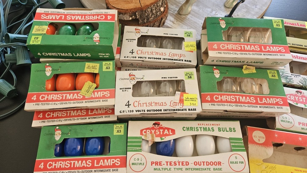 $ 11.092 Sets Of Vintage Christmas Lights 15 Count Each, Green & Red Cord. Some Lights