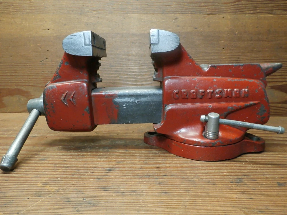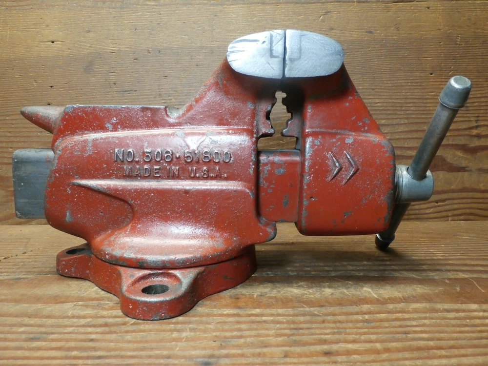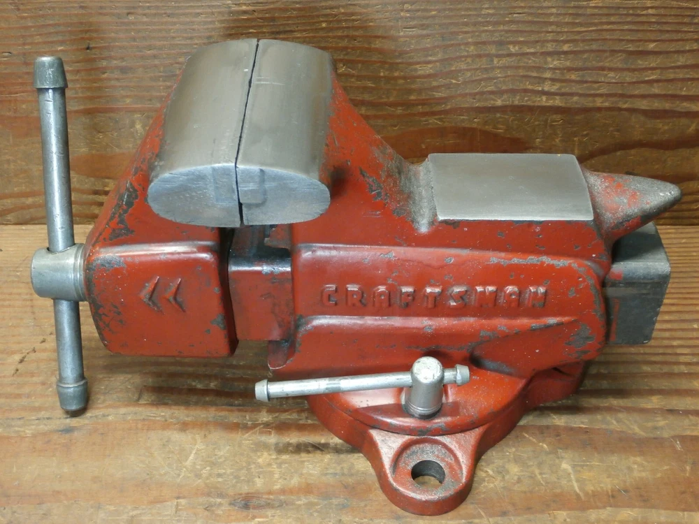 UP FOR SALE IS THIS Vintage =CRAFTSMAN= 3 1/2" Jaw Bench Vise No. 506-51800 W/Original Paint! IT OPENS AND CLOSES EFFORTLESSLY. IT'S 10 1'2" LONG, 5 3/4" HIGH, AND WEIGHS 16 1/4 #'S. NO RUST, BENDS, OR CRACKS. 1/32" OF THE TOP OF THE VISE AND THE WORKING SURFACE WAS REMOVED, AS SHOWN. VISIT MY STORE BELOW, AND YOU'LL FIND MY MANY OTHER VINTAGE COLLECTIBLE TOOLS FOR SALE >>>