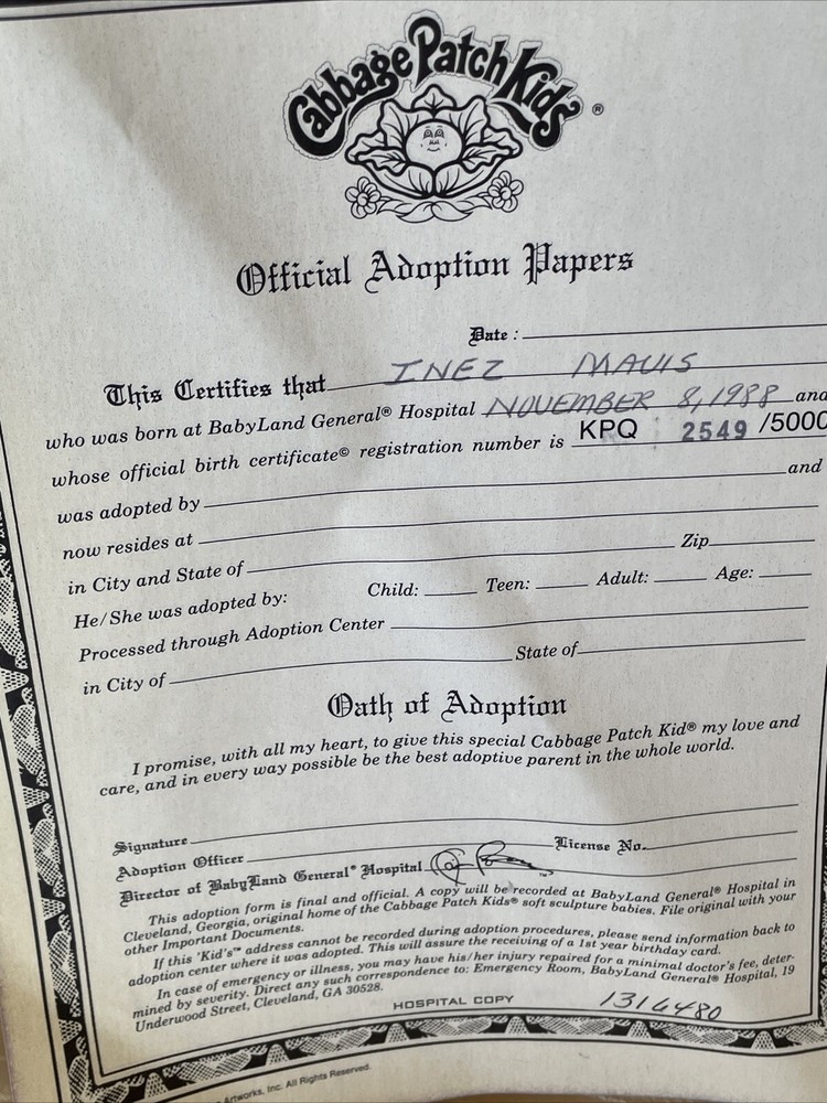 Vintage Cabbage Patch doll By Xavier Roberts Little People 22” adoption Paper 1978yr