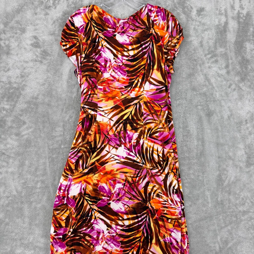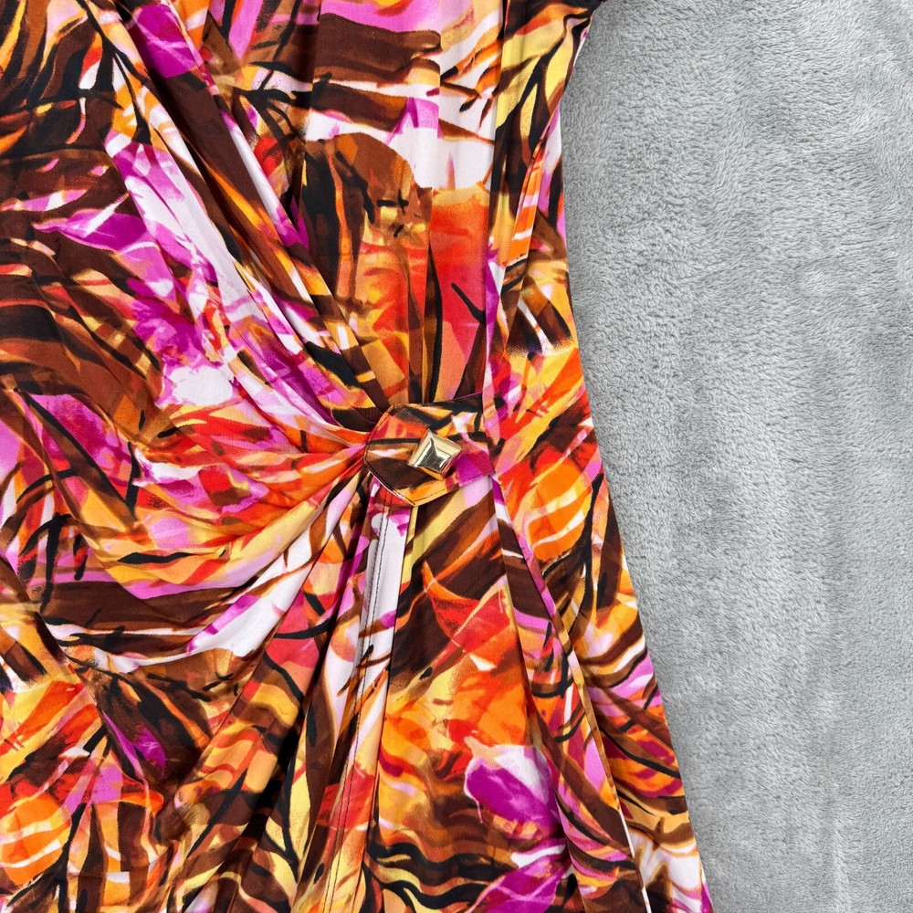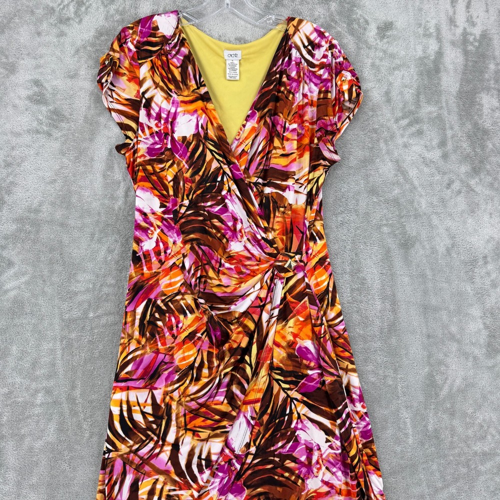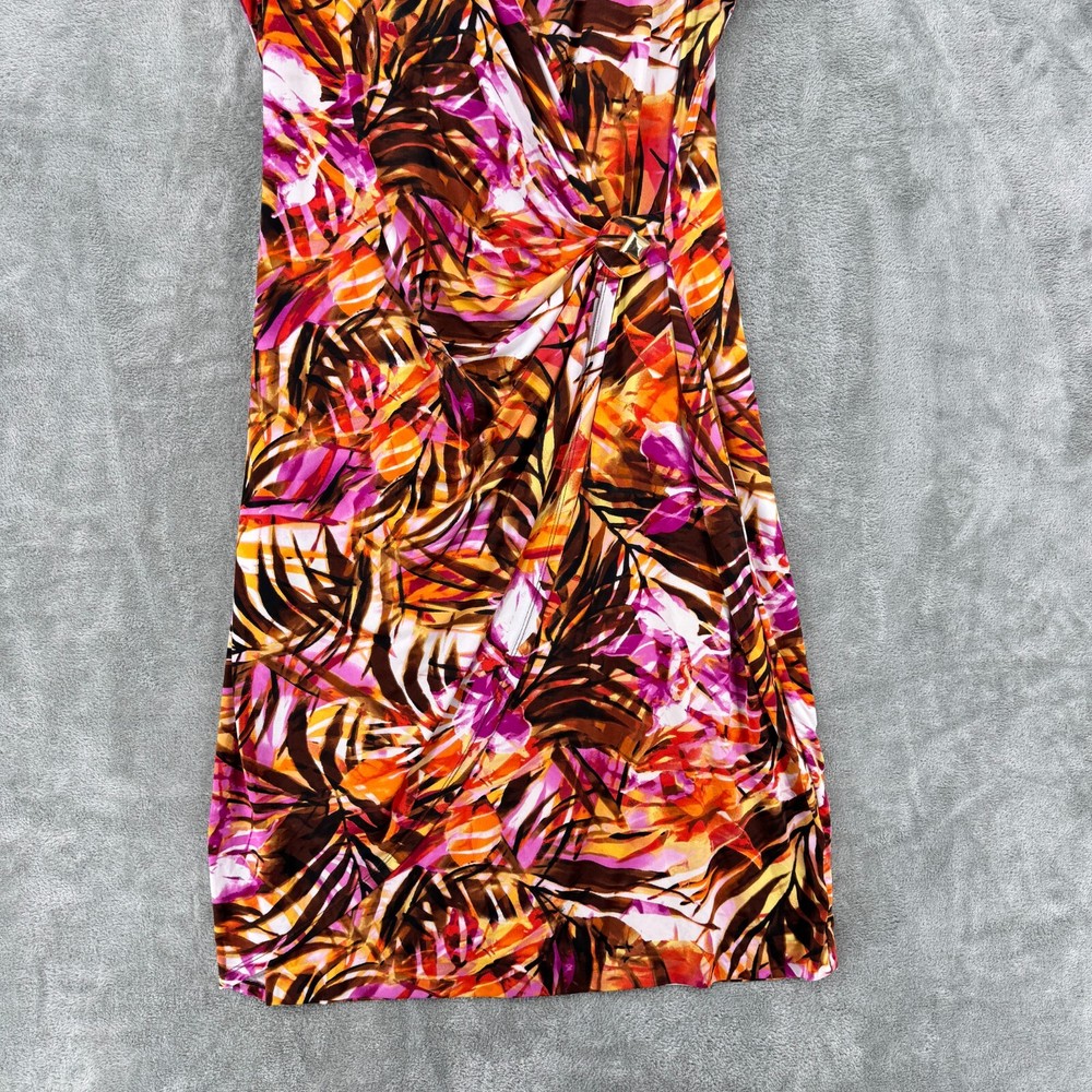 Vintage Cache Dress XL Tropical Palm Abstract Career Stretch Knit Pink Orange Pre Owned Excellent Condition. Tropical Print Palm/Abstract Orange, Pink, White, Yellow Print Machine wash Faux Wrap Dress Approximate measurement taken with garment lying flat. See photos above for measurements in last photo. All Items have been cleaned per Ebay specifications. All Items purchased by 7am MST will be shipped same business day. I do offer combined shipping discounts if you purchase more than one item. Thank you for checking out my Ebay store Subscribe and follow for special offers. Thank you for supporting small business.
