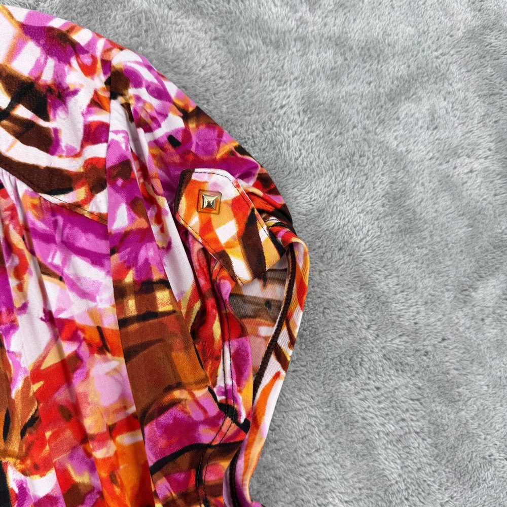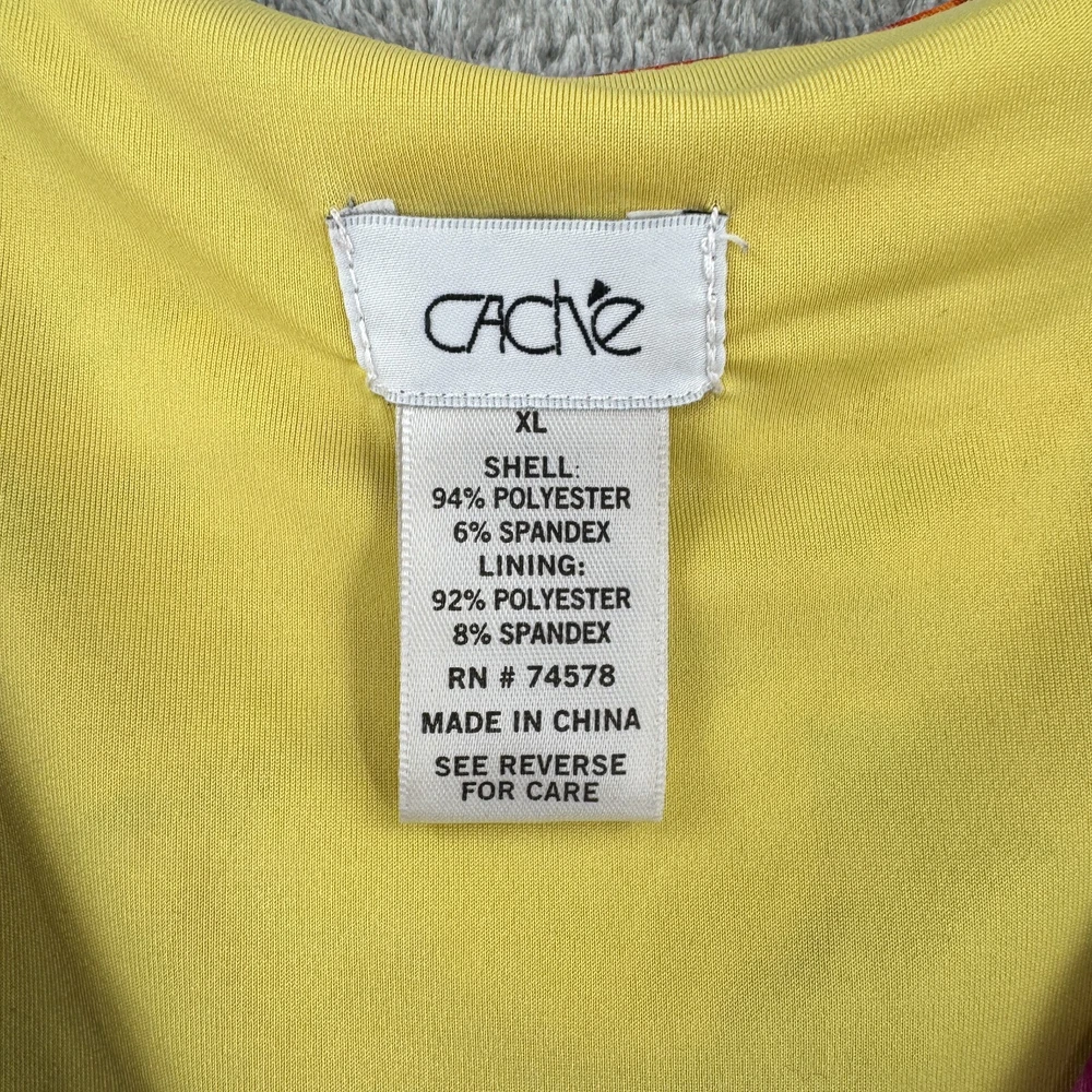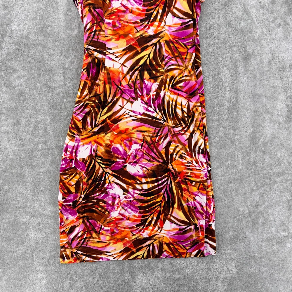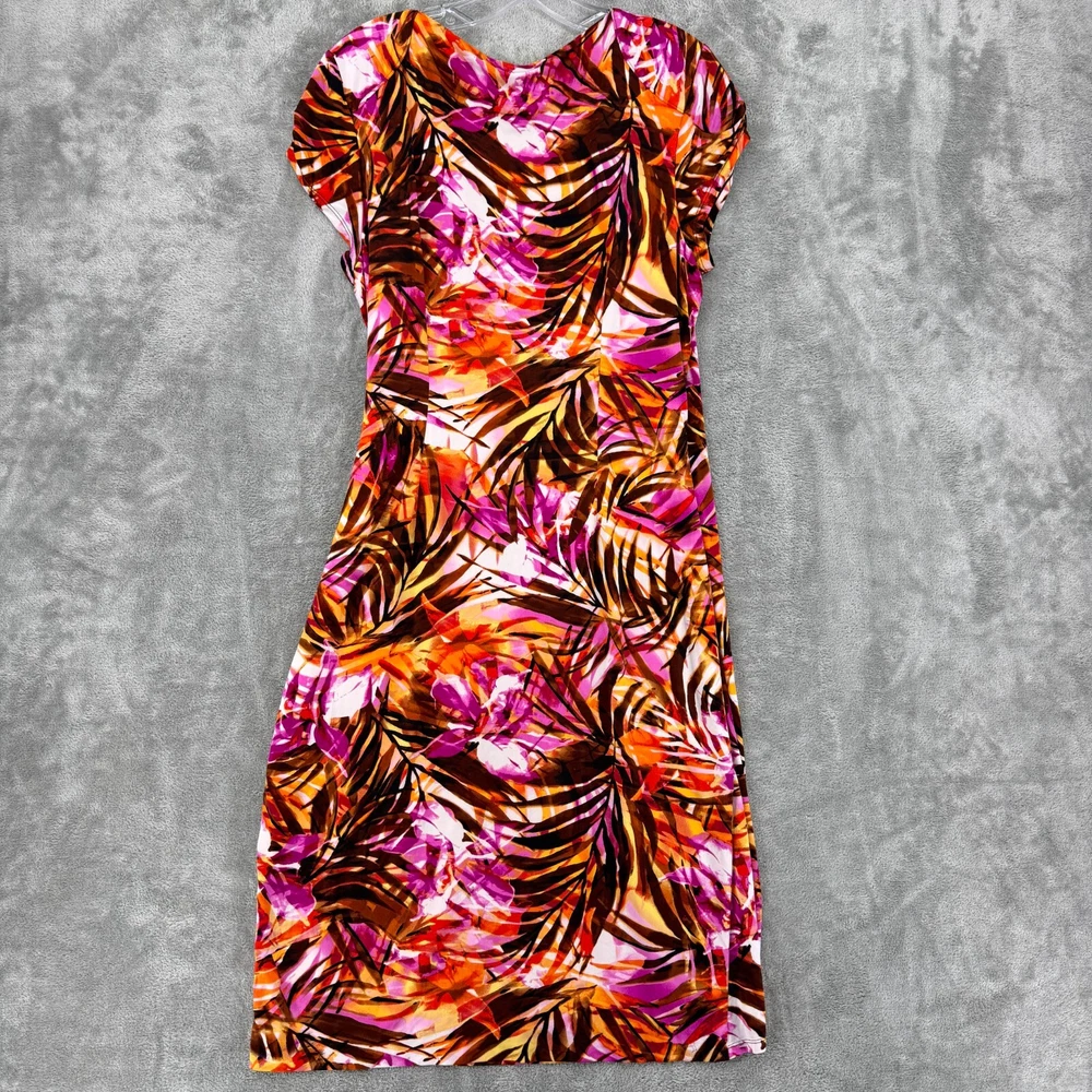 Vintage Cache Dress XL Tropical Palm Abstract Career Stretch Knit Pink Orange Pre Owned Excellent Condition. Tropical Print Palm/Abstract Orange, Pink, White, Yellow Print Machine wash Faux Wrap Dress Approximate measurement taken with garment lying flat. See photos above for measurements in last photo. All Items have been cleaned per Ebay specifications. All Items purchased by 7am MST will be shipped same business day. I do offer combined shipping discounts if you purchase more than one item. Thank you for checking out my Ebay store Subscribe and follow for special offers. Thank you for supporting small business.
