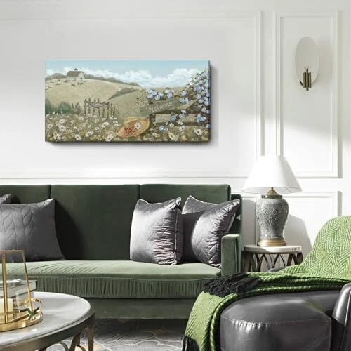 Return Policy Fast Delivery Trusted seller Vintage Canvas Wall Art for Living Room Blue Sky and Wildflowers Barn Picture Farm Cow Landscape Painting Village Nature Meadow Botanical Print Yellow White Daisy Floral Farmhouse Artwork 20x40inch Product Description Farm Natural Landscape:This canvas wall art brings a traditional floral subject to your walls with its collection of colorful flowers and dense meadow.It depicts a peaceful and relaxing country life,rustic barn and cows painting.It comes in vibrant yellows,purples,and greens hues set against a distant blue sky landscape,with a textured greens background to make this botanical wall art stand out wver you hang it Country Rural Scene Barn Picture:The vintage wall art printed on premium quality canvas using the fade-resistant ink.This farmhouse wall art shows a field of colorful wildflower blooms that bring a smile to your face when you walk into the room.With its charming countryside aesthetic,it complements traditional and modern farmhouse decor styles alike Lightweight and Ready to Hang:This bedroom wall art is gallery-wrapped,hand stretched by professionals,sending with two different kinds of nails as your choices.A single hook is affixed to the back wooden bar for hassle-free hanging right out of the box Perfect Wall Decor Idea:This farm canvas print brings a natural,floral feel to your bare walls in the living room,bedroom,kitchen,guest room and office.Different levels of paint make the whole picture vivid and can brighten the entire room.Great gifts for your relatives and friends Buy with Confidence:If any problems or concerns with this nature landscape wall art canvas, we are always for you.We are pursuing a good shopping experience for our customers by this flower wall art Shipping Returns Payment Shipping Shipping is FREE to all addresses other than APO/PO boxes in the lower 48 states. All our stock ships from US-based warehouses. Shipped via USPS or UPS (depending on location and package weight) Unless stated otherwise, all orders will ship within 24-72 hours of your payment being processed. Check our feedback to see the great reviews of FAST shipping we offer. Returns Seller does not accept returns Payment We currently accept payment via eBay managed payments only. Once payment is cleared, we will dispatch your shipment within 1-3 business days. Please refer to the "Shipping" tab for more information regarding shipping speed to your destination.