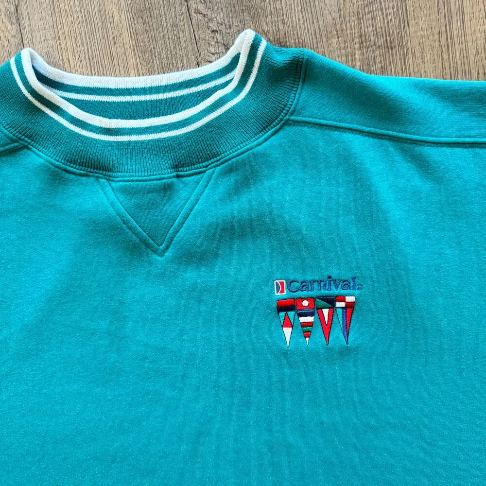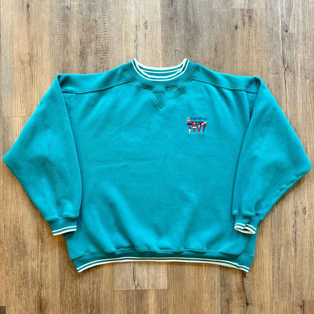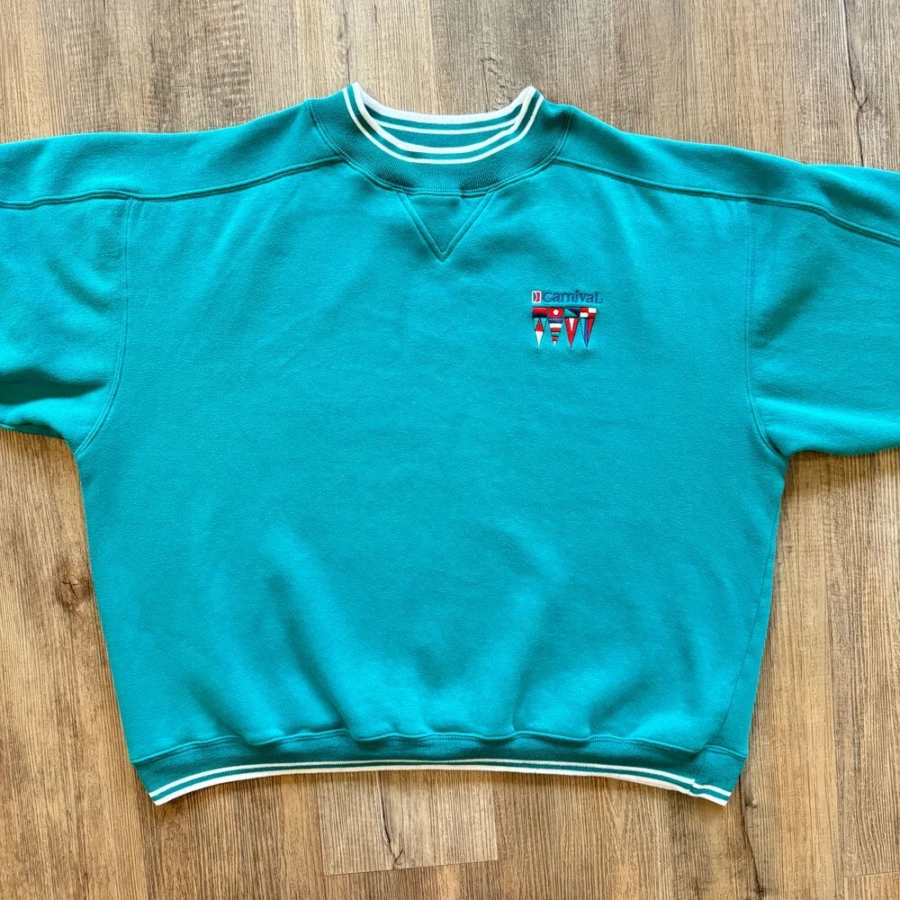 In great used vintage condition. No noticeable flaws. 65% Cotton; 35% Polyester #CarnivalCruiseLine #Carnival #Teal #Vacation #Cruise