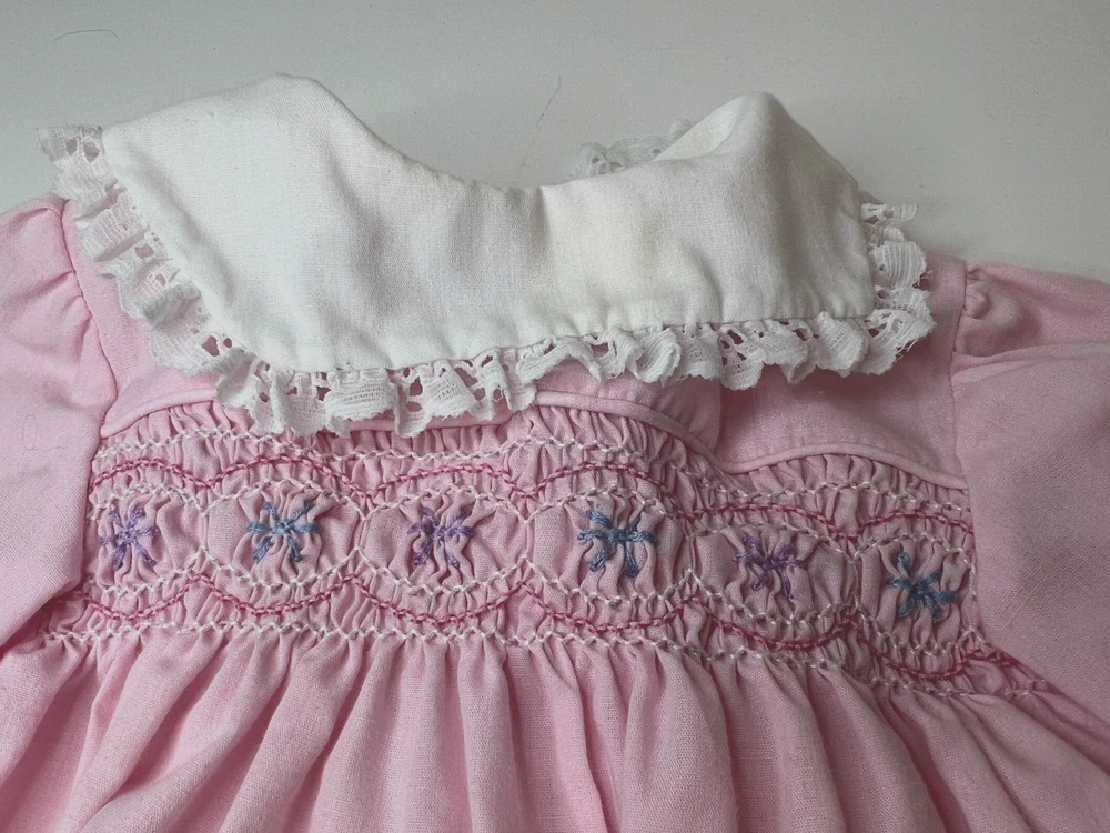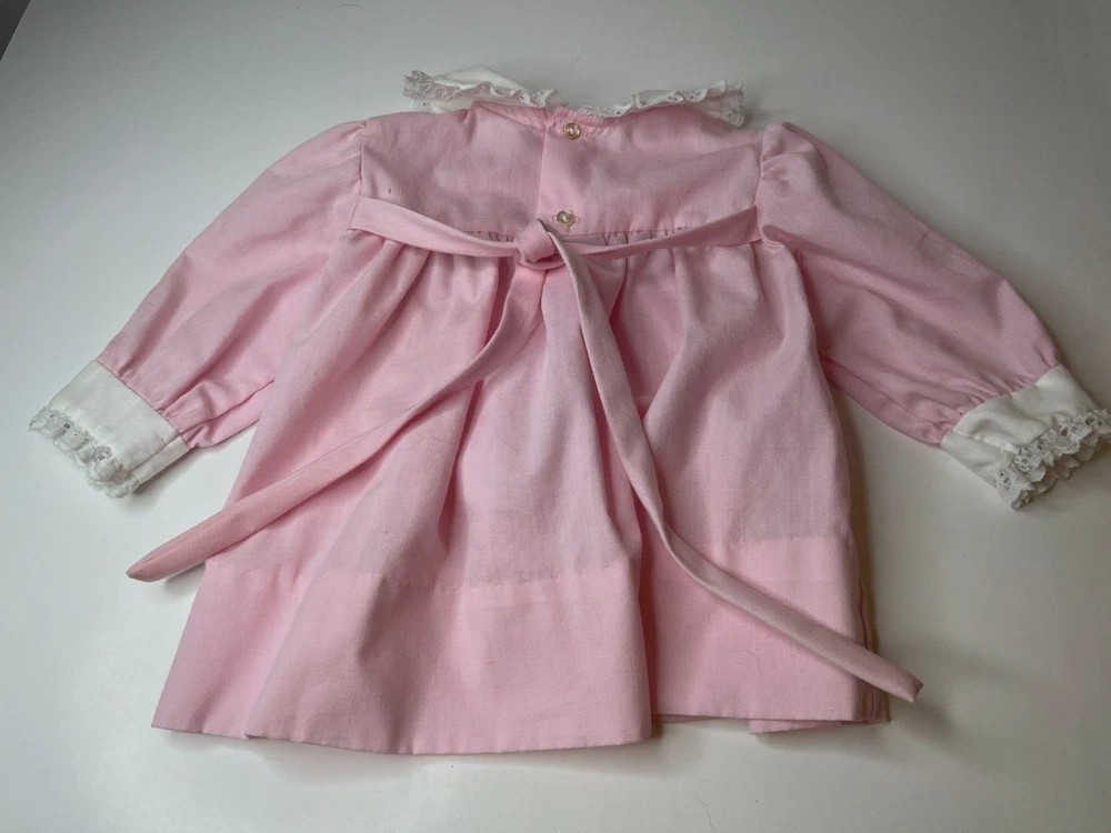 Vintage Carrousel Infant Pink Hand Smocked Dress Lace Edges Tie Back 12M PLEASE READ BEFORE BIDDING OR BUYING: PRODUCT CONDITION: We sell vintage, overstocks, returns, shelf-pulls and new items. Items could have dents, shelf wear, torn and not in the greatest condition. In no way does this effect the product itself. If we think a product is unsafe or used, we will not list it. We inspect carefully and will describe the condition as best as we can. Any problems, please contact us immediately so we can rectify the problem. SHIPPING - All orders will be shipped within 24 hours on regular business days. Orders placed after 11am on Fridays will be processed the following Monday morning. All orders will be packaged securely and shipped using USPS or FEDEX. Shipping transit times vary and usually take 1-7 business days based on the final destination. Orders will be sent First Class Mail whenever possible. We offer a money-back guarantee (excluding any shipping charges) on items returned within 30 days of purchase. If an error was made on our end or the item was grossly misrepresented, we will pay for return shipping as well as original shipping. INTERNATIONAL - INTERNATIONAL - WE SHIP TO CANADA ONLY-NO EXCEPTIONS. Please be aware import duties, taxes, and charges are not included in the item price or shipping cost.These charges are the buyer's responsibility.Please check with your country's customs office to determine what additional costs will be prior to bidding or buying.