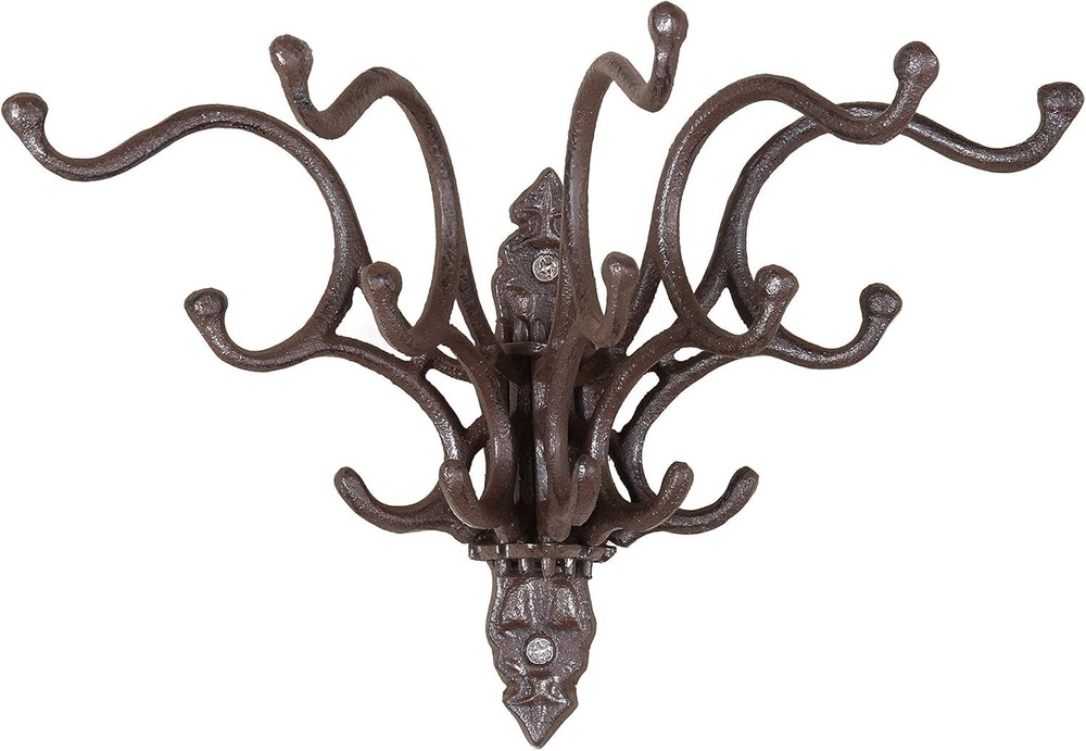 Creative Co-Op Antique Decorative Cast Iron Multi Hook Wall Hanger with 15 Ho... This farmhouse-inspired, wall-mounted storage piece features an elegant, yet durable, cast iron silhouette in a heavily distressed finish Can be mounted in 2 different directions based on preference, and features 15 sturdy hooks for hanging coats or handbags Each 3-pronged hook swivels independently for easy access to stored items Made from 100% cast iron Wall hook measures 7.25 inches L x 2.5 inches W x 7.5 inches; Each 3-pringed hook measures 0.25 inches L x 2 inches W x 3 inches H Discover more fantastic items by visiting our eBay store! Thank you for choosing to shop with us. We appreciate your support!