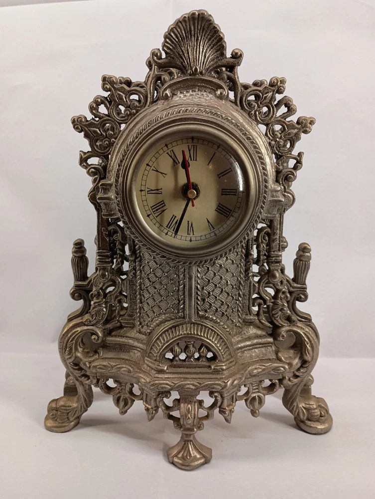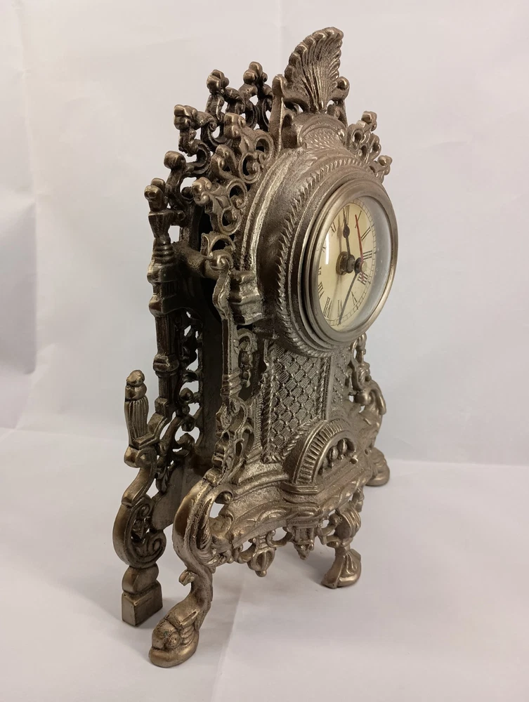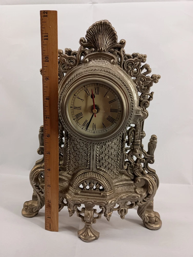 This vintage mantle clock features a Victorian style design and is made of cast metal. The intricate details and ornate embellishments typical of Victorian decor are showcased in this elegant timepiece. Perfect for adding a touch of antique charm to any mantel or shelf, this clock exudes a sense of nostalgia and sophistication. Its classic design and craftsmanship make it a desirable collectible for those who appreciate vintage and period pieces. I put a battery in this clock and it worked for a few minutes and stopped , I rolled the battery in its housing and it started working again, and again after several minutes it stopped. So this clock is going to need a little love to operate correctly. This clock is being sold AS IS Thank you for visiting my listing today and thank you for your interest in this item! My goal is to have a pleasant transaction resulting in a satisfied customer. I hope any transaction between us leaves you with a feeling of confidence knowing you can trust me and the items I offer here. *Most if not all my listings are set to accept offers. Feel free to send an offer and I will be happy to consider it!! *Please contact me with any questions or concerns and I will be happy to help. *Always examine the photos carefully, and if in doubt, email me with any questions you may have. *Please note that condition statements are offered as a guide only. They will always be somewhat subjective and reflect our opinion, which may not necessarily agree with someone else's opinion. PLEASE READ: I aim to please and I want my buyers to have a positive transaction with me. If you have questions, concerns, or special requests related to any of my items I hope you will contact me so we can work them out to your satisfaction. I sell my items to give you a great item at a decent price while making a little profit at the same time. If you feel the item you are interested in is too pricey do not hesitate to send me a fair offer and I will consider it. My goal is to satisfy your needs and mine so both parties can benefit. SHIPPING: If you prefer a different shipping method or company please contact me and I will do all I can to make that happen. If you have concerns or requests about the packaging of your item contact me and I will do all I can to accommodate them. Shipping costs are based on location in each state or country, the costs always differ. After I have received your payment I will ship your item out within 3 business days or less excluding weekends and holidays. BEFORE PURCHASING & BIDDING: **Please see all the pictures. I do not have great photography skills but I try to get the most accurate photos I can. If you are unsure about something you see in a photo contact me so I can do what I am able to answer your concern about the item. **I cannot stress enough that if you have any questions or concerns please contact me before purchasing and bidding. Communication can solve so much. **As a customer myself, I understand the meaning of customer satisfaction and my goal is to have nothing but satisfied customers. If you are not unsatisfied with your purchase I ask that you please contact me so I can take care of your issue. My goal is for you to be 100% satisfied. INTERNATIONAL BUYERS WELCOMED - PLEASE NOTE: I welcome International buyers! Please be aware that any custom/duties/taxes that the parcel might incur once it is out of the USA are the responsibility of the buyer. Please check with your country's customs office to determine what these additional costs will be prior to bidding or buying. Please refer to the eBay Site Map for more information if needed.