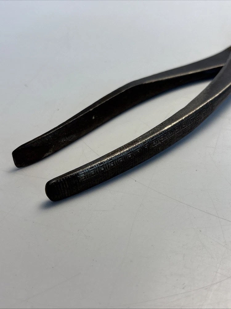 Vintage slip joint pliers marked Cee Tee Co., Jamestown NY, U.S.A. Forged steel construction with adjustable slip joint pivot and serrated jaws. Classic early American hand tool from a Jamestown, New York manufacturer known for quality forged tools. Dark aged patina from use and storage. Overall length is approximately 8 inches. Marking is clearly visible on the handle: “Cee Tee Co. Jamestown NY U.S.A.” See photos for full details of condition and markings. Condition: Used vintage condition with surface wear, oxidation, and patina consistent with age and use. Jaws and pivot operate normally.
