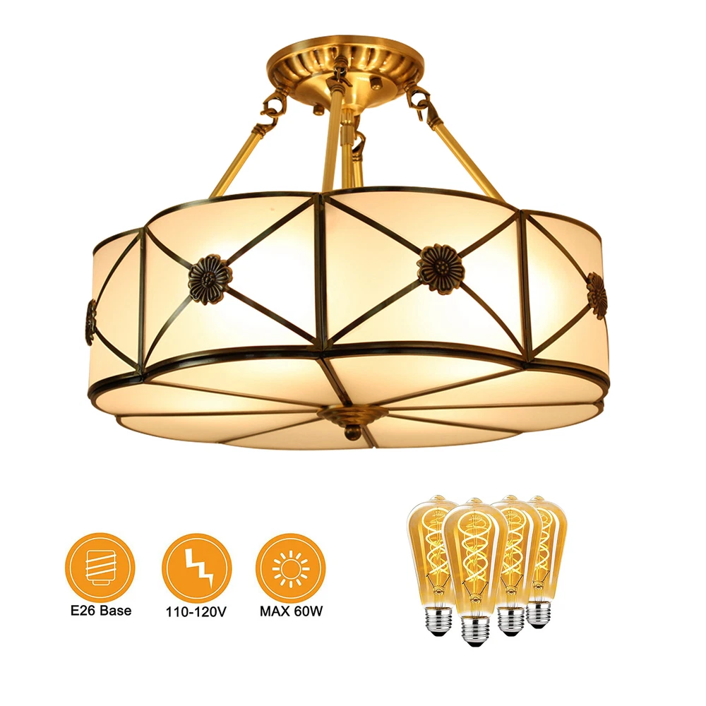 💛💛💛Welcome to ksbestdeal-shopping💛💛💛 About this item Lamps: Lampshade wide 18inch height 12inch , Base wide 7Inch , Switch: hardwired ,Finish: Metal base with Bronze color and hand made glass lampshade , Suitable for Kitchen Island Bar Living Room Dining Room Loft Switch: hardwired , Bulbs: E26 bulb socket, Requires (4pcs) Incandescent or LED bulbs( Not included), Voltage 110-220V, Wall control. Condition:New 【 Feature 】 Classic Design: Stunning semi flush showcases a uniquely patterned shade for a beautiful, everlasting style. Illuminate your home with this gorgeous, decorative Ceiling Light. Lamps are beautiful handcrafted lamps that will certainly add elegancy and creativity to your home. These lamps are inspired from the Art Nouveau design, making each one a unique and stunning centrepiece to place in your living room, bedroom, office, kids room, or college dorm 【 Perfect decoration 】 Applicable: Mount this elegant fixture in different areas around your home. Perfect for the dining room, living room, bedroom, hallway, entryway, foyer or entry. This creative design of high quality Hanging Light has not only a lighting effect, but also a good decorative effect. Tips: 1. We recommend installing by professionals 2. -When installing and cleaning light, youmust cut off the power supply. Applicable to many occasions Study/Office Living Room Dining Room Multi-angle display Payment Delivery details Terms of sales About us Contact us Payment We accept ebay payment 。 Fees such as import duties, taxes are not included in the item price or shipping costs. These charges are the buyer's responsibility. Delivery details Shipping: 2-9 working days to: USA Terms of sales We maintain high standards of excellence and strive for hundred percent customer satisfaction. Feedback is very important to us. We hope that you contact us immediately before you give neutral or negative feedback, so that we can address your concerns. It is impossible to address issues if we do not know about them! About us Your satis faction is our ultimate goal. We work hard to earn your trust and future business. Our certified technicians have tested each item before shipping. The unit comes with 1 year limited warranty on all manufacturing defects. a) If you receive a defective item, you may return it or ask for a discount. Please contact us within 14 days after you receive the package. b) What you returned must be intact and in its original packaging as re? u. Customer is responsible for shipping costs of the returned item. c) We will cover the cost of shipping back t with the shipping rate indicated in the registration page. We will send you a new unit or refund the full payment you paid. Thank you. Contact us Business Hour Business Hour: Monday To Friday: 8:30 AM to 5:00 PM (Beijing China time) Due to time zones, our reply to your questions may not be immediately. But within above working time, we will reply your email within 24 hours. If it's non-workdays, please kindly be patient and wait till Monday. Please contact us with ebay message. Please feel free to contact us if you have any questions. Monday To Friday: 8:30 AM to 5:00 PM (Beijing China time) Due to time zones, our reply to your questions may not be immediately. But within above working time, we will reply your email within 24 hours. If it's non-workdays, please kindly be patient and wait till Monday. Please contact us with ebay message. Please feel free to contact us if you have any questions. *Besonderheiten* High-quality Material !✨❤ 🔥Features🔥 Long Service Life ! 🔥✨ ❤Highlights❤ ❤❤❤Great value with warranty❤❤❤ ★Merkmal★ ★Fast shipping,Long service life★ Brand TBvechi Manufacturer Warranty 2 Years shipping notice Can not ship to Puerto Rico,Alaska/Hawaii Manufacturer Does not apply Number of Settings 1 Features 4-Light * Feature * Creative Design,Durable Material,Beautiful Appearance Feature 1 Easy installation,Convenient Use,Easy Operation Amperage Unknown Installation Area Indoor Style Vintage/Retro Material Glass Type Pendant Color White MPN Does Not Apply Room Bathroom, Bedroom, Dining Room, Hallway, Home Office/Study, Kitchen, Living Room, Children's Room Voltage AC 100-120V Lighting Technology LED Power Source Wall Plug-In Shade Shape Round Department Adults Number of Lights 4 Bulbs E26 bulb socket Switch hardwired EAN Does not apply UPC Does not apply