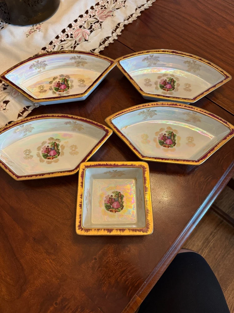 Elevate your dining experience with the Vintage Ceramic Divided Serving Lazy Susan Relish Dish, a 5-piece set crafted by the esteemed Royal Japan. Each piece is designed to enhance the elegance of your table setting, featuring a round, large tray made from high-quality ceramic. The set's meticulous construction boasts durability and a timeless style that complements any decor.Practicality meets sophistication with this Lazy Susan set, which includes a tray that ensures easy sharing of condiments and relishes. The functional design is matched by a beautiful aesthetic, making it an ideal addition to both casual and formal gatherings. Enjoy the blend of artistic craftsmanship and practical use that this set offers.