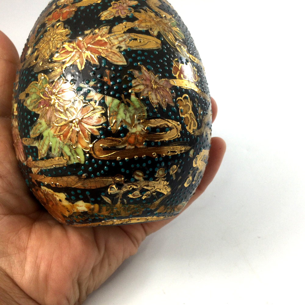 HomeVintage Ceramic Egg with Gold Cloisonne Roses Floral Design