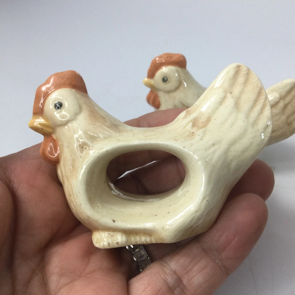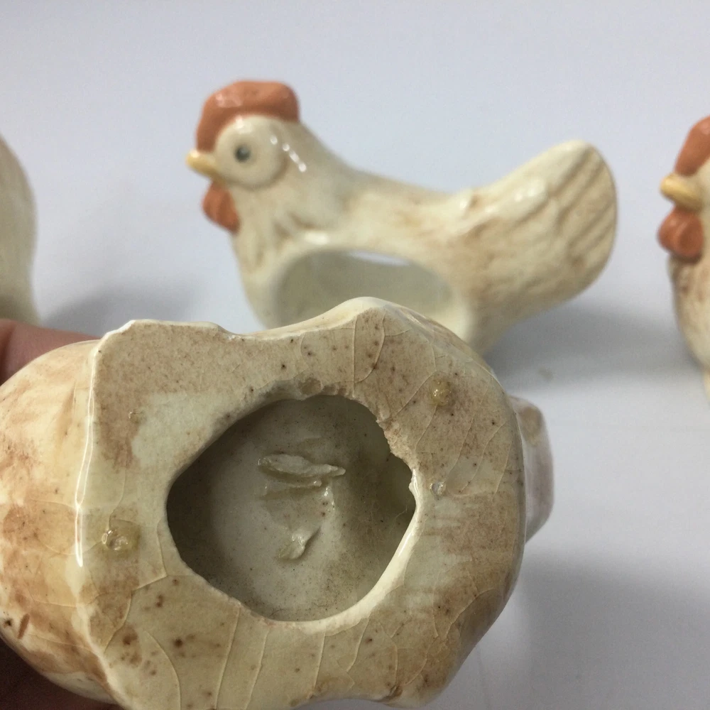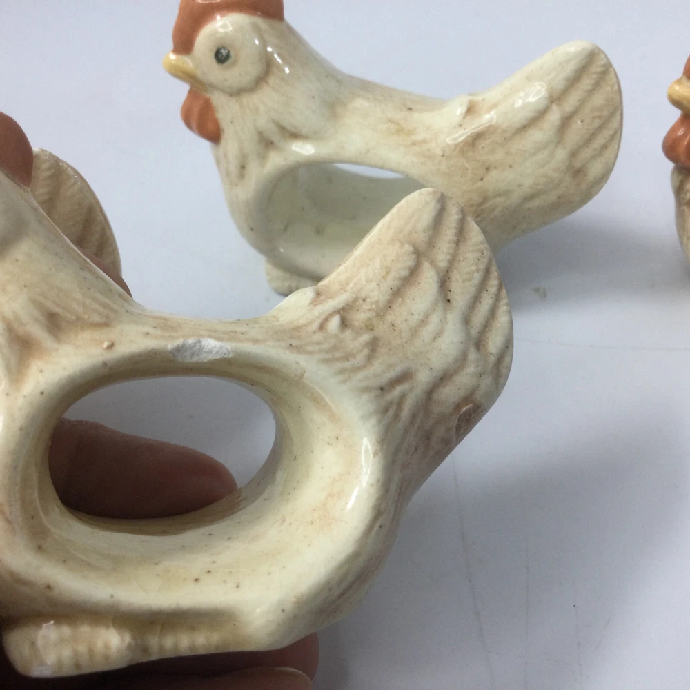Vintage Ceramic Napkin Holders Chickens White Beige 3" x 2.5" Rustic Set of 4. Very good condition of 3 of them. One has small chip, photo 3. InvN/RS/2