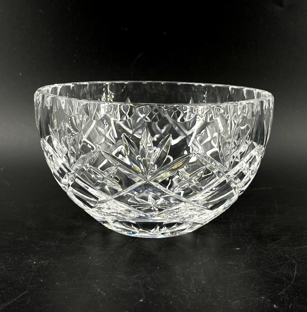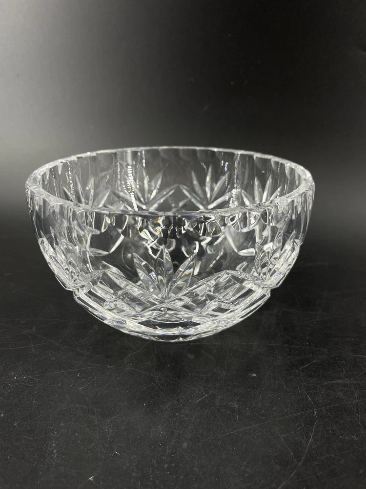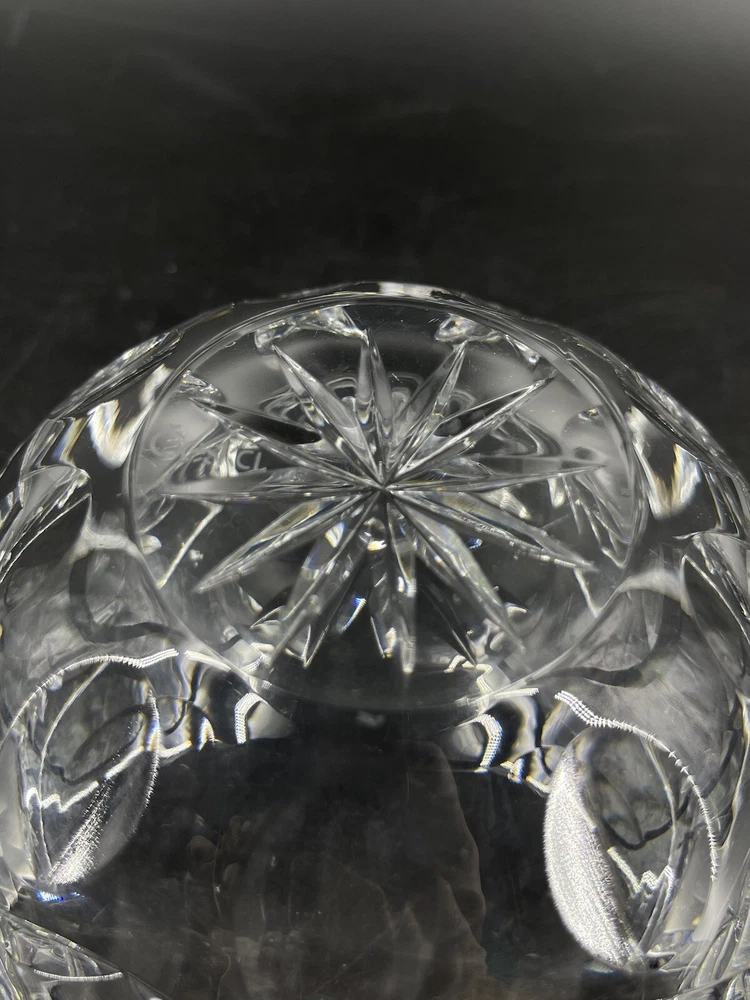 Vintage Cexkci Ceska Czech Hand Cut Crystal Bowl Diamond Stars Fans Pattern 5.75 5 3/4" diameter and 3 1/2" deep. Acid etched signed on bottom.