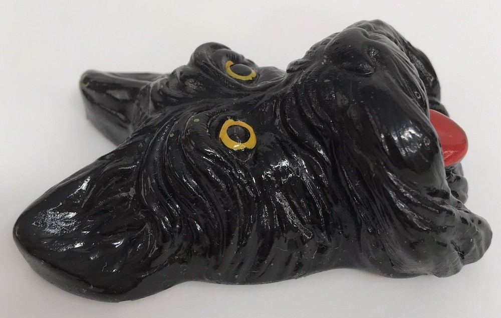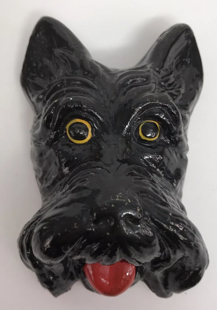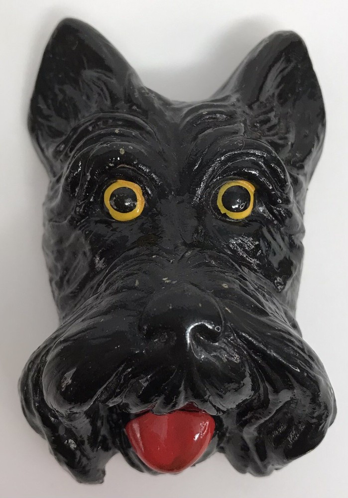 Vintage Chalk Ware Scottish Terrier Scotty Dog Figure Head Wall Plaque Miniature Nice condition. Some very minor paint wear on the ear edges from use. Please see pictures for condition details.