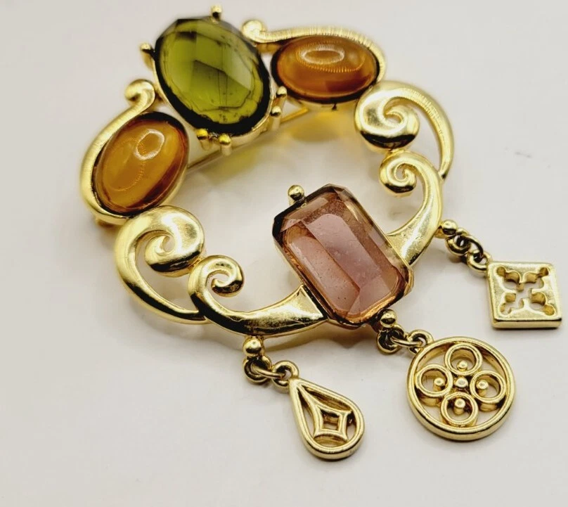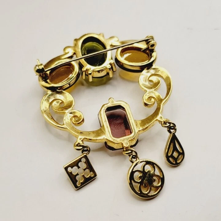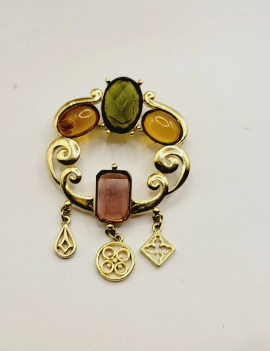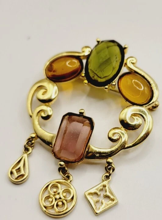 Vintage Charm Brooch Pin Jeweled Ornate Victorian Gold-Tone ELEGANT