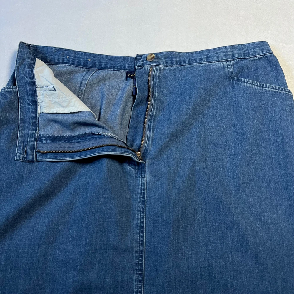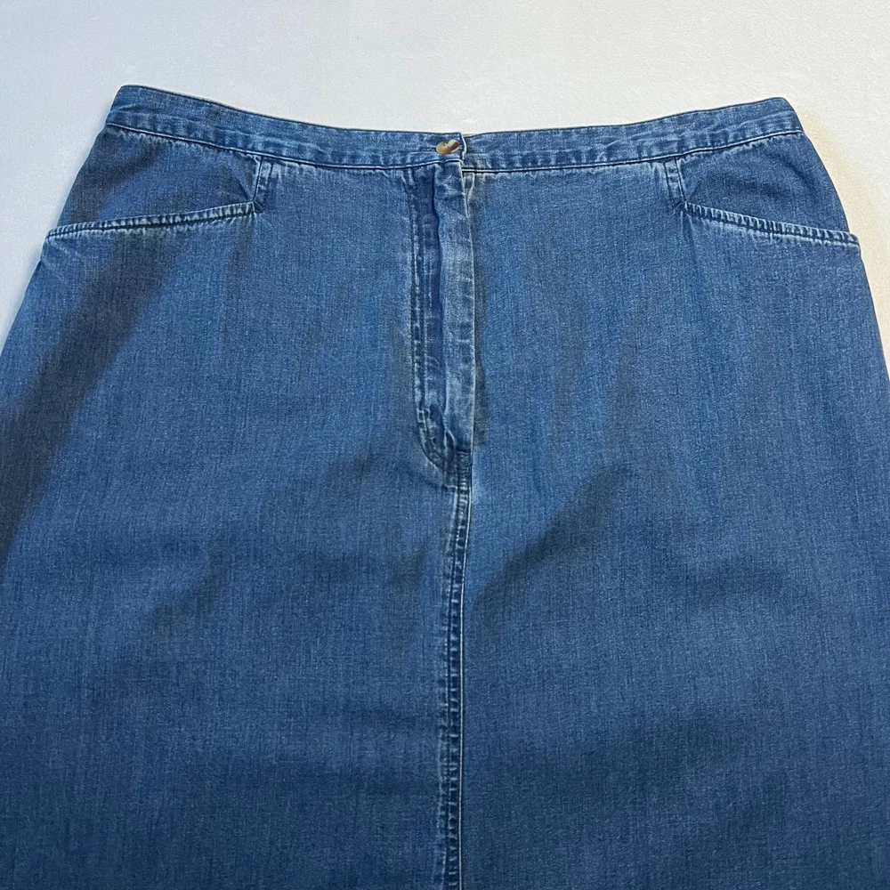 Vintage Charter Club Lightweight Denim Maxi Skirt with slits Size 16 Western CONDITION: Pre-Owned. Gently Used Condition. FLAWS/ALTERATIONS: There is one small snag on the skirt. There are two tiny tears near the opening of the slits on the front and back of the skirt. Please see the last pictures. COLOR: Blue SIZE: Women’s Size 16 DETAILS: Maxi length Woven, no stretch Front and back slits Button closure, zipper fly Front pockets Lightweight denim Fitted skirt MEASUREMENTS: Waist: 17.5" Full Length: 37" **All measurements are approximate and are taken flat** MATERIAL: 100% Cotton Bundle 2 OR MORE items to save more! Reasonable offers are welcomed! TAGS: Casual Comfy Spring Summer Fall Contemporary Minimalist Trendy Y2K 90s 2000s Western Rodeo Cowgirl Cowboy Equestrian Southwestern Classic Staple Preppy Hipster Plus Size Curvy