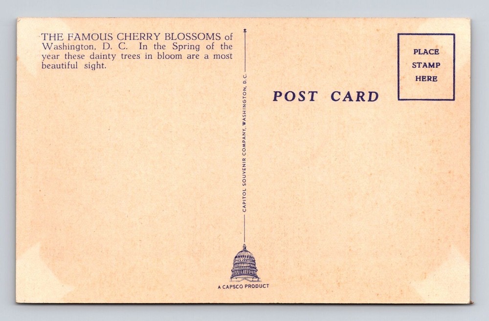 Vintage Cherry Blossom Postcard Featuring Washington DC Capitol