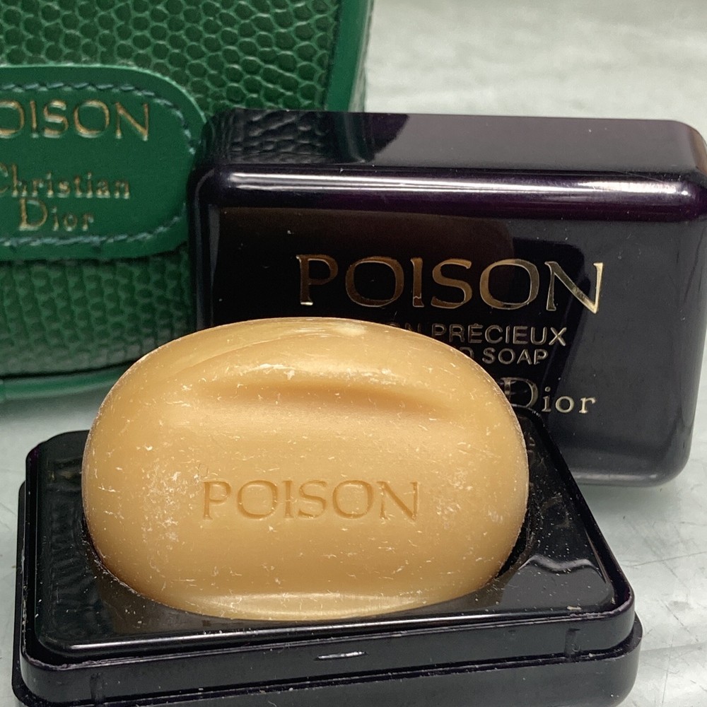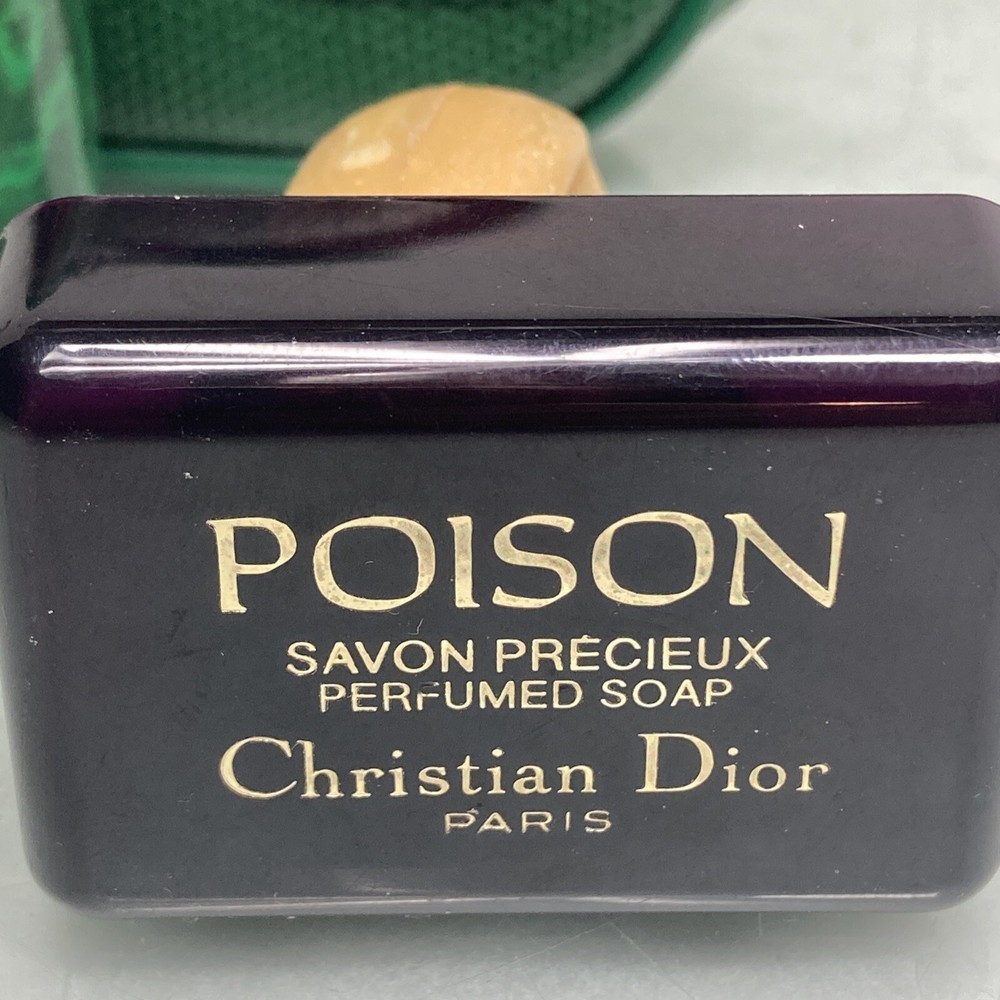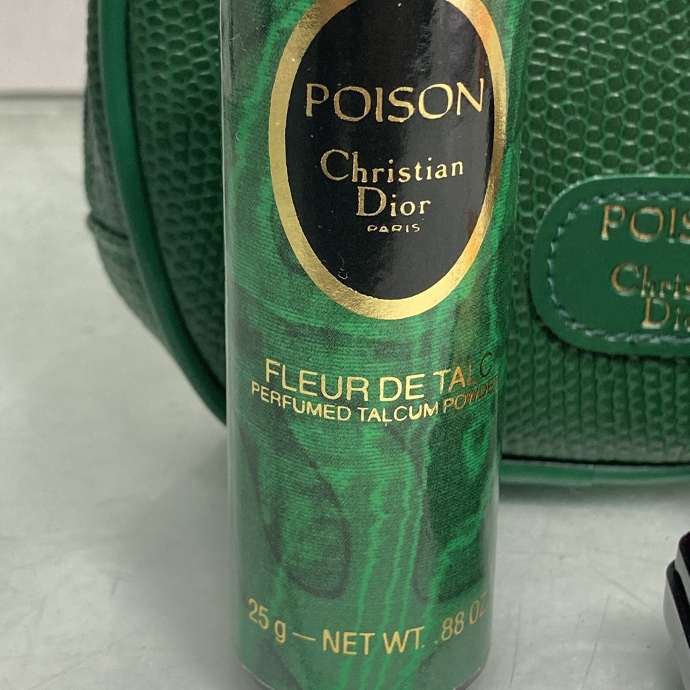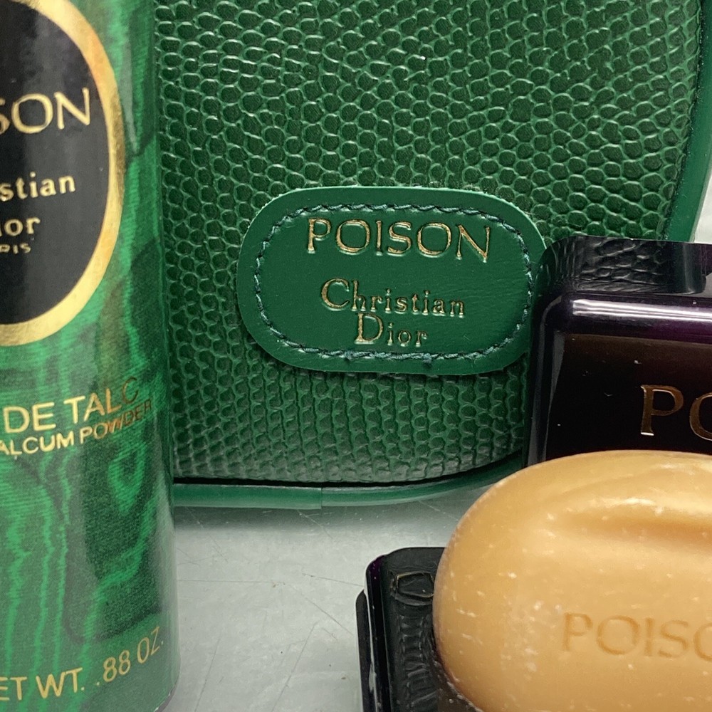 Christian Dior VINTAGE Poison Travel Set Perfumed Soap Powder Case Green.