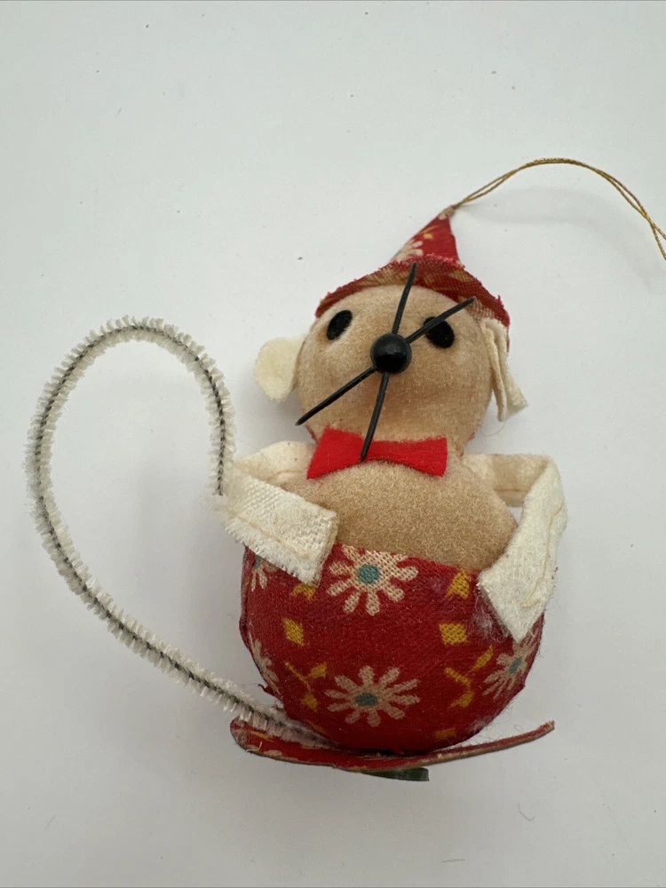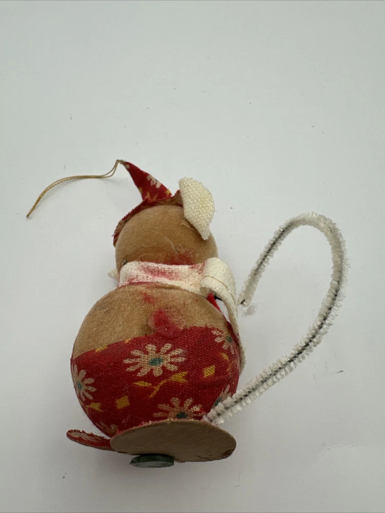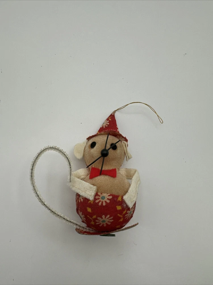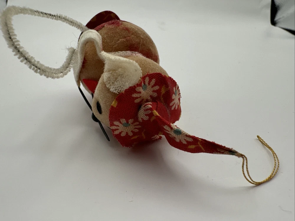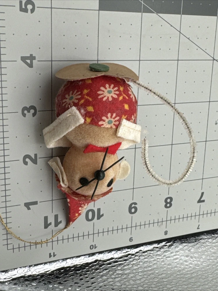 Vintage Christmas Holiday Mouse Felted Plastic Tree Ornament Figure Pre-owned. Some wear on back as shown. See measurements and pictures.