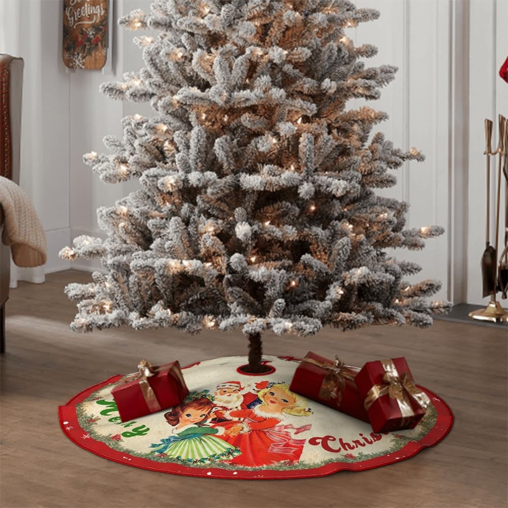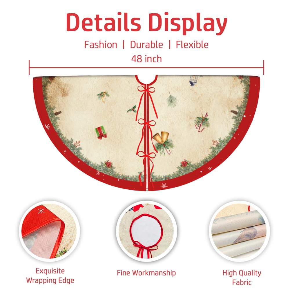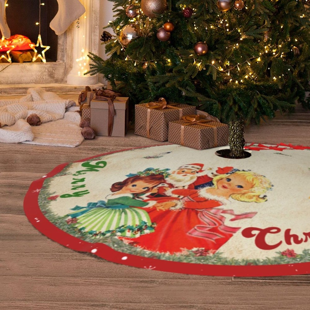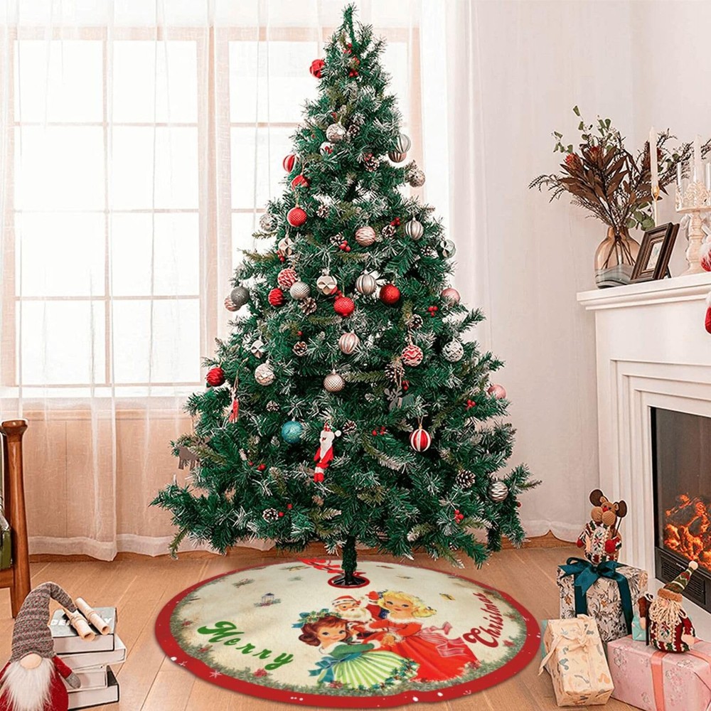 Vintage Christmas Tree Skirt Christmas Decorations - Red Vintage Style Xmas Tree