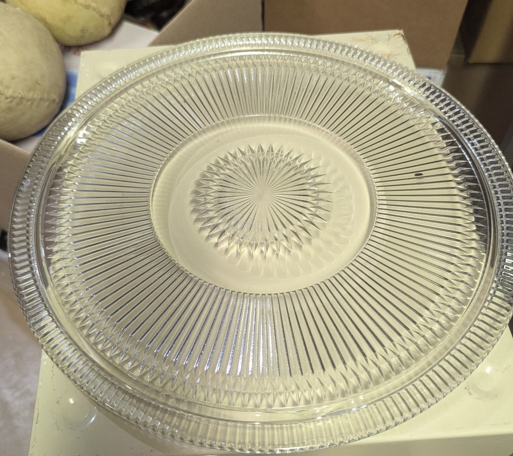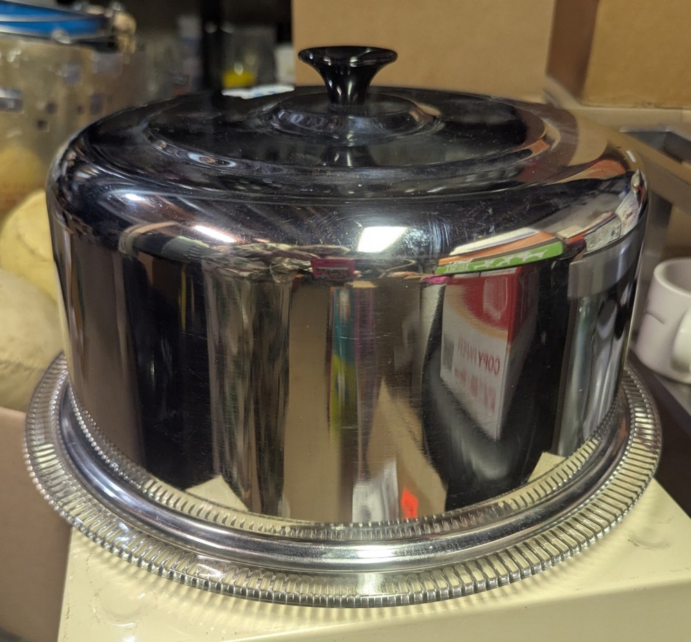 Elevate your cake presentation and preservation with this Vintage Retro Chrome Footed Fluted Glass Cake Plate Server Saver. Its elegant round design and shimmering silver color make it a stylish addition to any kitchen or bakery. The set includes two pieces: a cake saver with a secure black knob lid, ensuring your cakes stay fresh and dust-free. Crafted with a classic aesthetic, this unbranded cake saver is perfect for bakers and decorators who value both form and function. The fluted glass construction adds a touch of sophistication, while the durable chrome finish promises longevity. Ideal for transporting cakes to parties or storing them in your bakery display case.