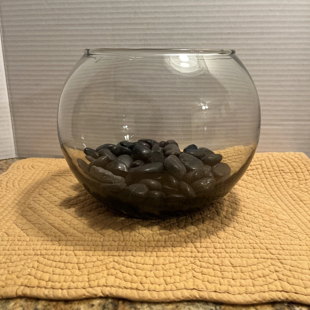 Comes as Pictured- Black Rocks NOT included Excellent condition-measurements in pictures “24.5 inch circumference Thick Clear Glass Any Questions Message Me