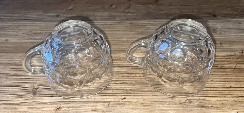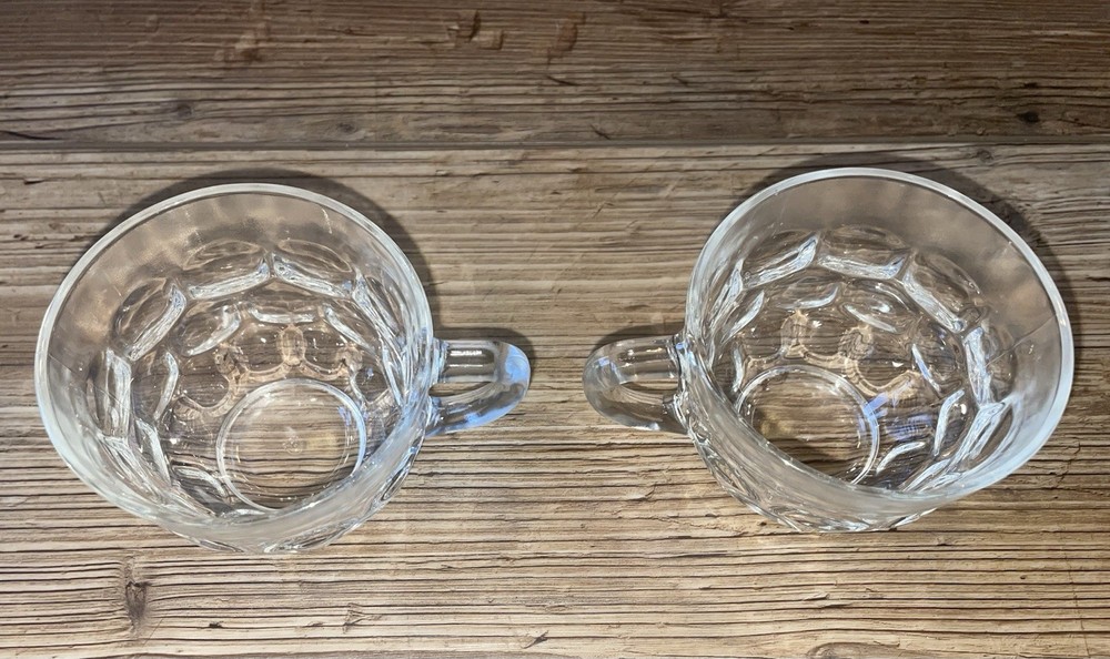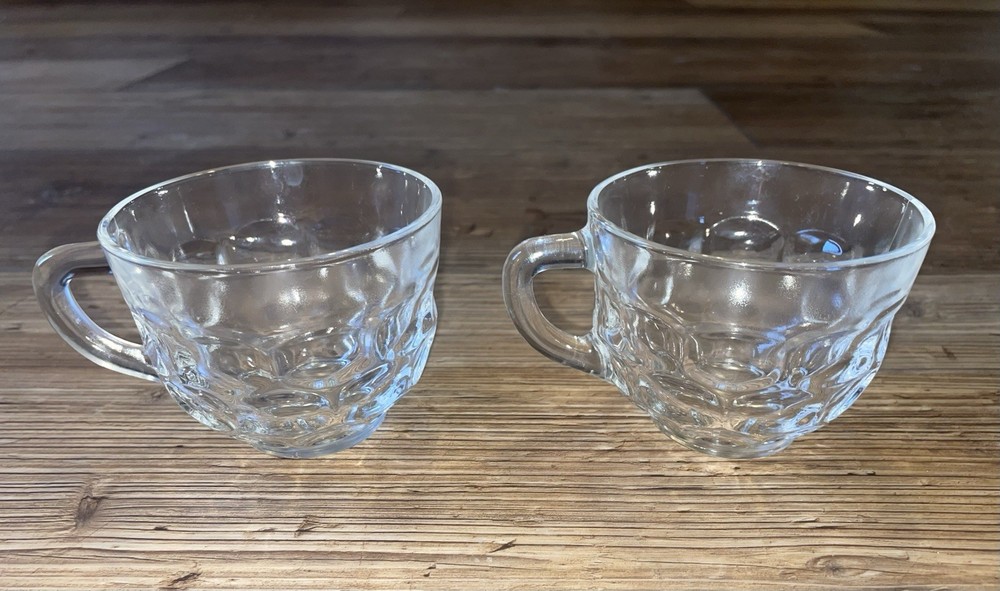 Set of two clear punch glasses. 2 1/2 inches tall 3 inches wide. Used but good condition.