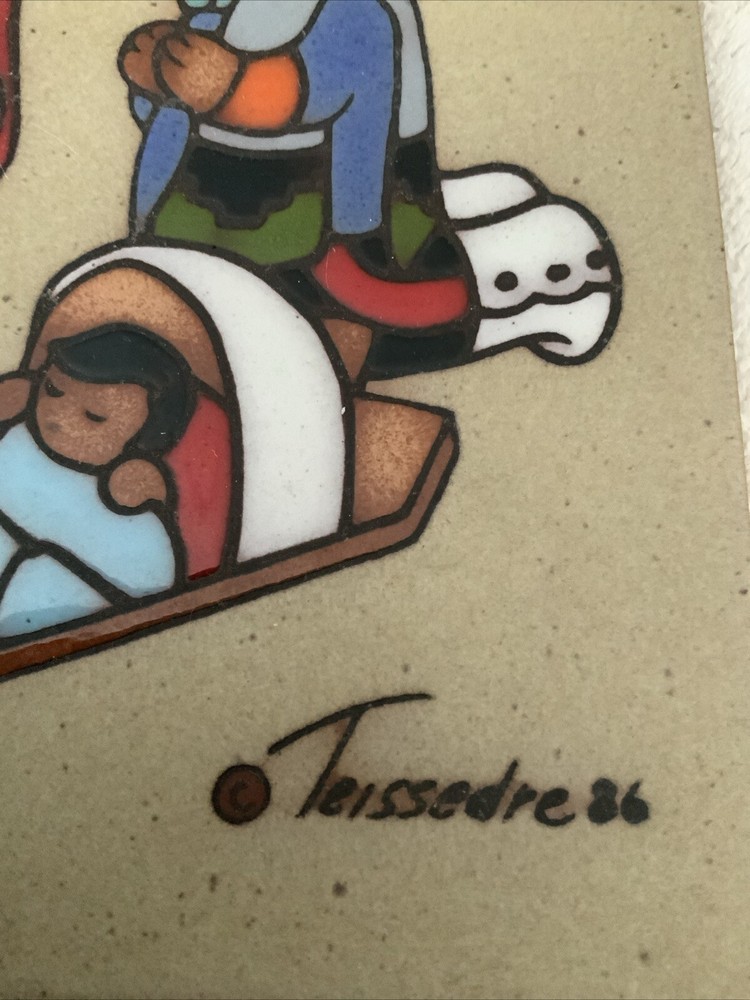 Vintage Cleo Teissedre Native American Tile Trivet Wall Art Nativity Scene