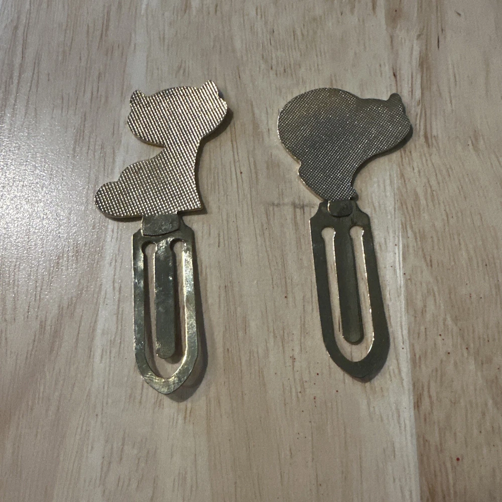 Vintage Cloisonne Enamel Kitty Cat Bookmark crafted from multicolor gold-tone metal. The bookmarks feature a charming animal theme with intricate enamel designs. Perfect for adding a touch of whimsy to your reading material. Sold as a lot of 2.
