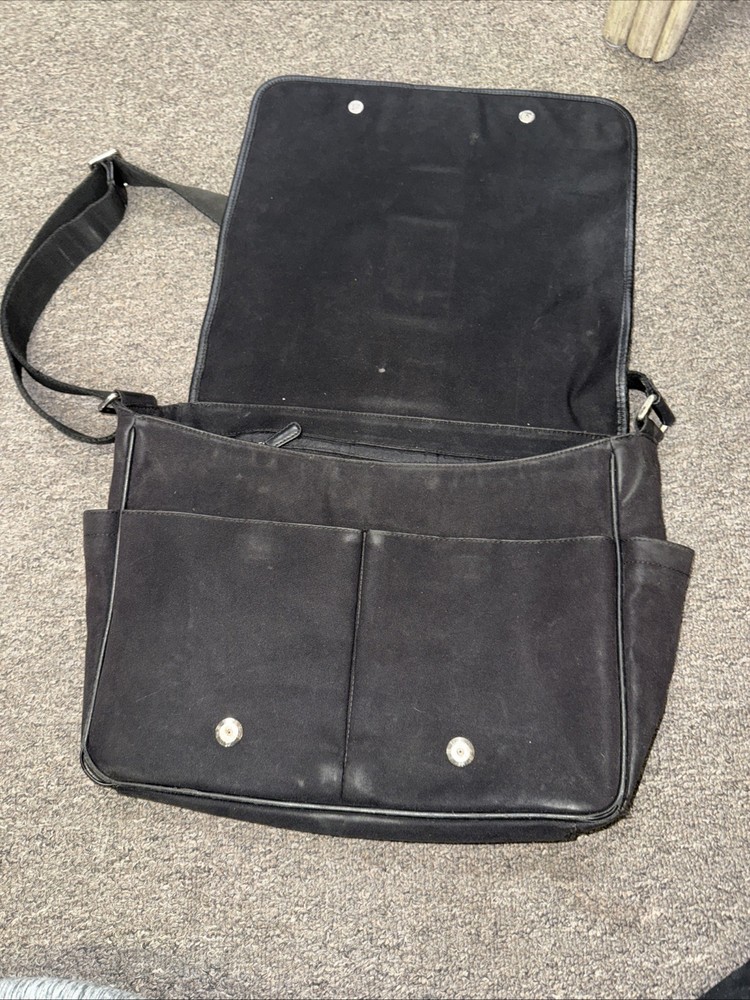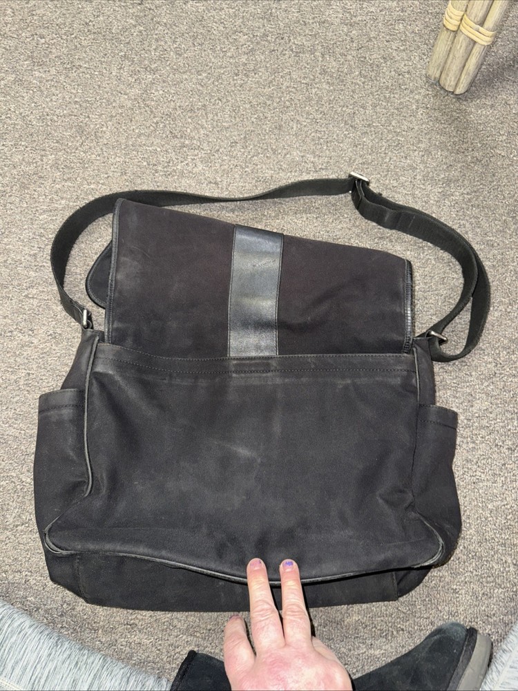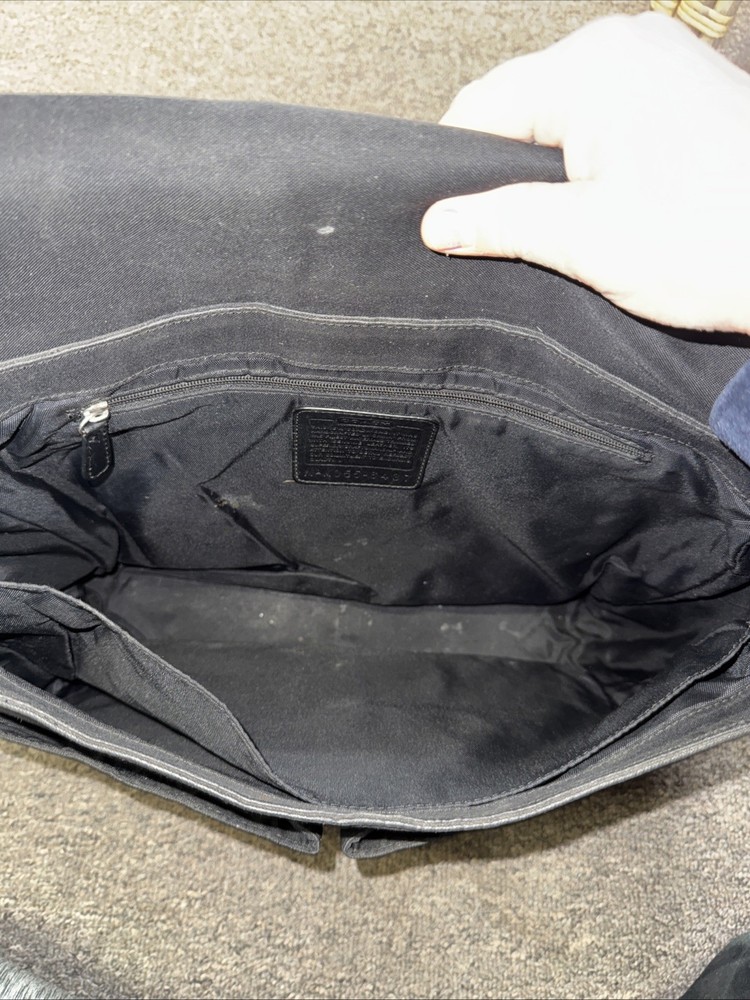 The Vintage Coach Monogrammed Messenger Briefcase is a classic and stylish accessory perfect for business occasions. Made of black canvas and leather, this original messenger bag exudes a Secretary/Geek vibe. The iconic Coach brand adds a touch of sophistication, making it a versatile and timeless piece for adult unisex users. Perfect for carrying documents and essential items, this vintage briefcase combines functionality with a retro charm.