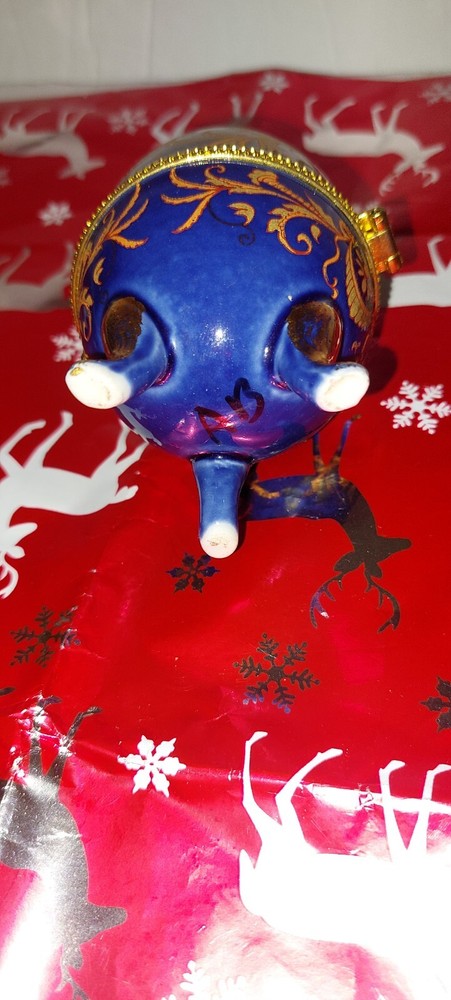 $ 7.92Blue Glass Brass Angel Cherub Dresser Trinket Jewelry Hinged Box Thomas Cathey