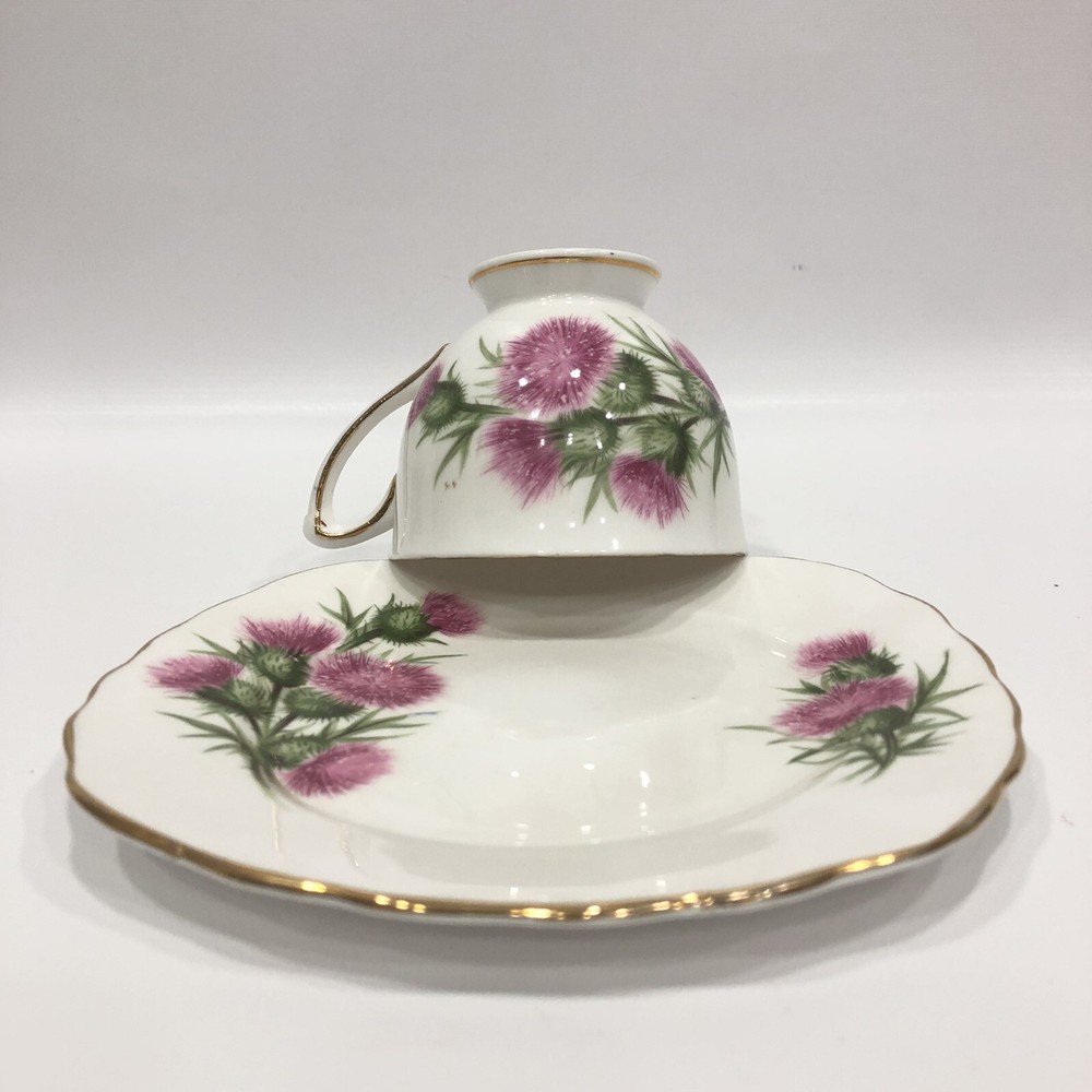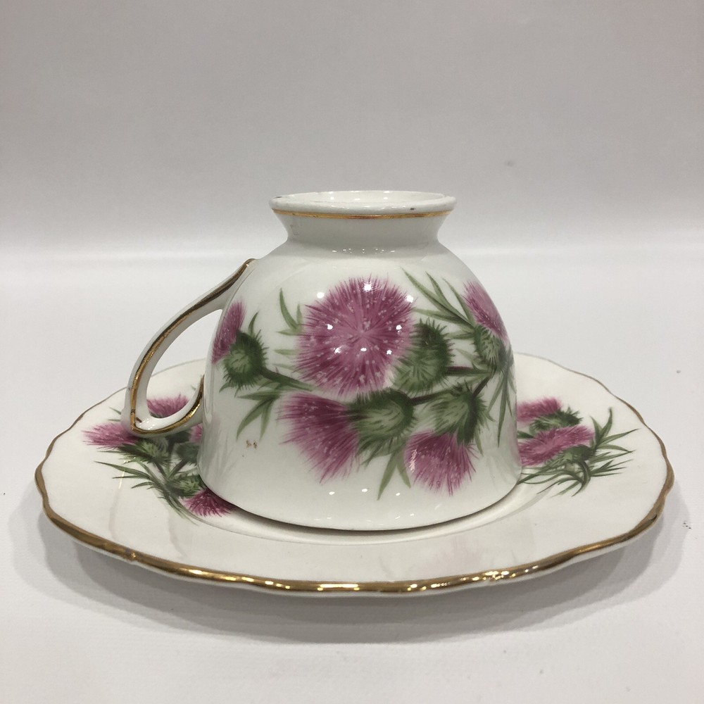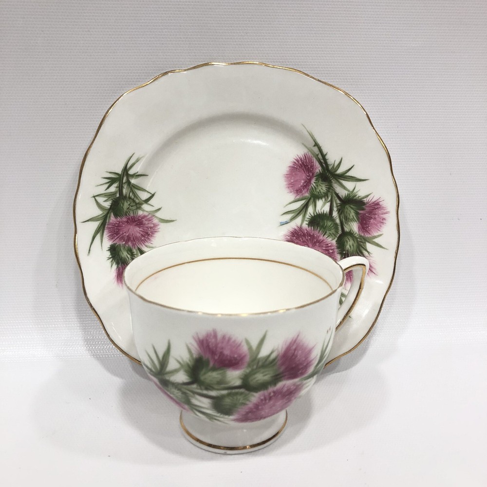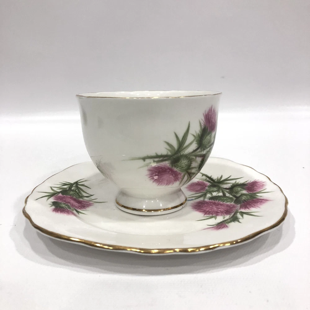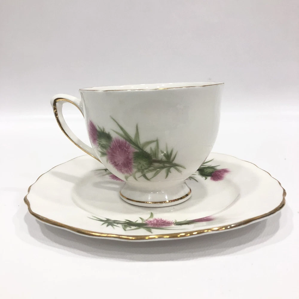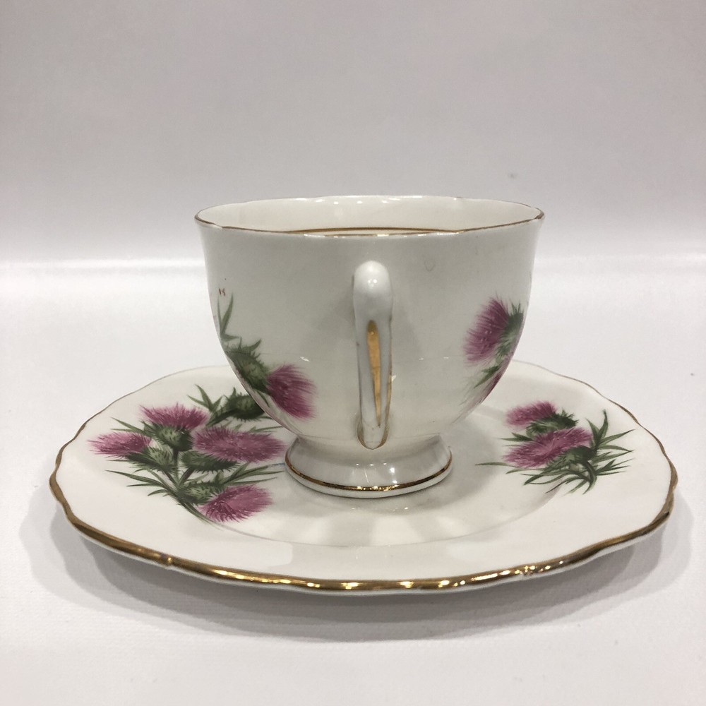 Vintage Colclough Bone China footed White/Pink coffee Tea Cup & Saucer set Pink/Trim Gold tone Pink Floral. Yea cup: 3” Tall; 3”Across. Saucer: 6” Across. Made In England. Condition is "Used in great shape Shipped asap by USPS Priority Mail.