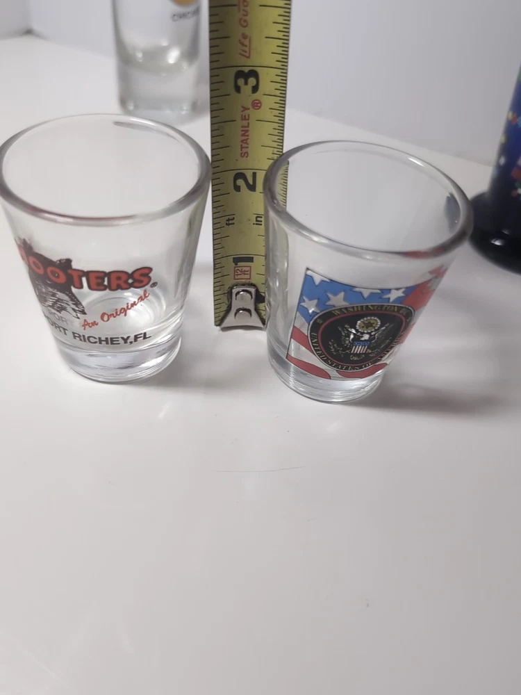 This set of five vintage shot glasses features designs related to popular tourist destinations such as Hooters, Hard Rock, Daytona, Planet Hollywood, and Washington DC. All of the glasses were displayed only, in a sealed case. They are in excellent condition, like new! There are no cracks or chips. Made of clear glass in the 1980s, these shot glasses showcase a collection of iconic logos and themes from prominent franchises. Perfect for collectors or bar enthusiasts looking to add a unique touch to their collection, these shot glasses offer a nostalgic glimpse into the past. The set is being sold as a collection. The shipping will be double boxed to assure they arrive at your bar safely. Cheers!
