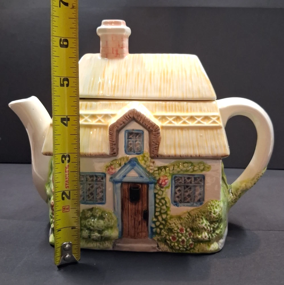This vintage collectible spring cottage tea pot, made in the Philippines, is a charming addition to any tea set collection. The small ceramic teapot features a multicolor design and includes a lid for easy storage and serving. Hand wash only to preserve its original condition, this unique piece is the perfect blend of traditional craftsmanship and modern style, making it a standout piece in any kitchen or home decor.