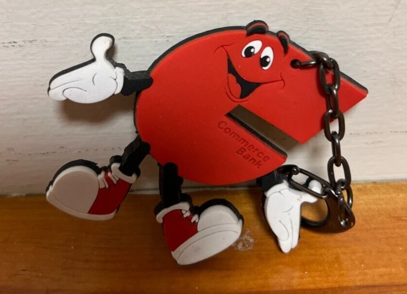 vintage Commerce Bank Mascot key chain measures from top of C to bottom 2 1/2" free shipping from my key chain collection