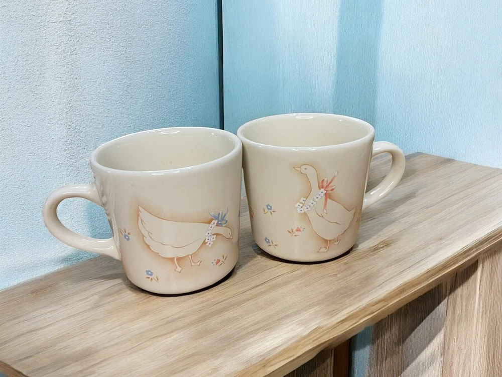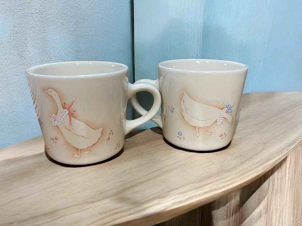 See pictures. There is a stain in the bottom of one of the mugs. Unable to get it off. Add a touch of vintage charm to your collection with this set of four Corning Country Goose Promenade coffee and tea cups. These limited edition mugs feature a round shape with a goose pattern and are made of durable, break/chip-resistant fused glass. Each mug has a 3-inch diameter and height, with a comfortable handle for easy grip. Not only are these mugs functional for everyday use, but they are also decorative with a glossy finish and printed backstamp. They are microwave and dishwasher safe for easy maintenance. Perfect for all occasions, these Corelle brand tea mugs are an original production from the United States and are a must-have for any collector.