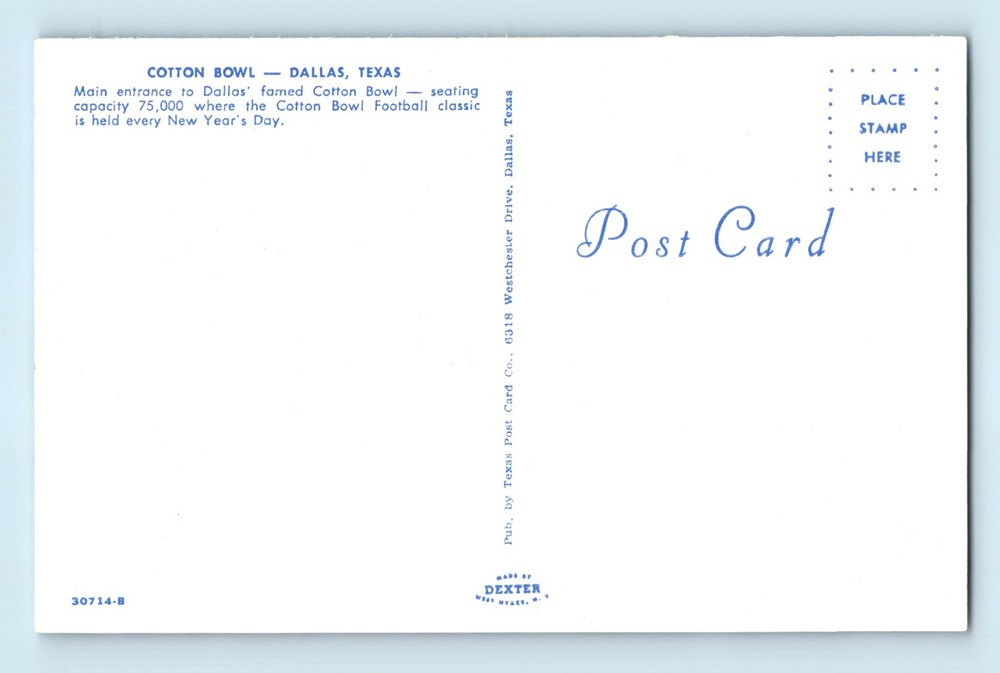Vintage Cotton Bowl Dallas Texas Football Stadium Main Entrance Postcard NY Day C2