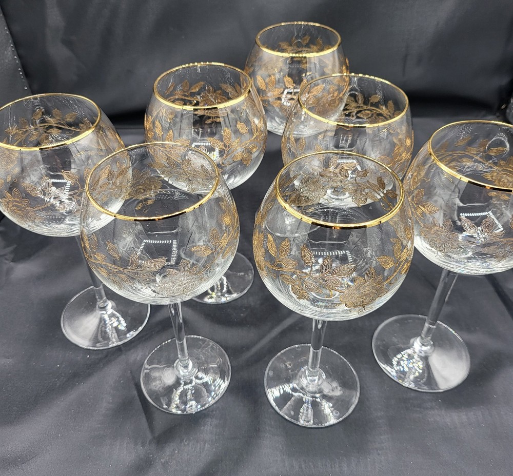 Vintage Coupe Cocktail Wine Crystal Glasses Gold Rose Gold Trim Set Great Condition. See pictures for more details My own items were used one time, very beautiful