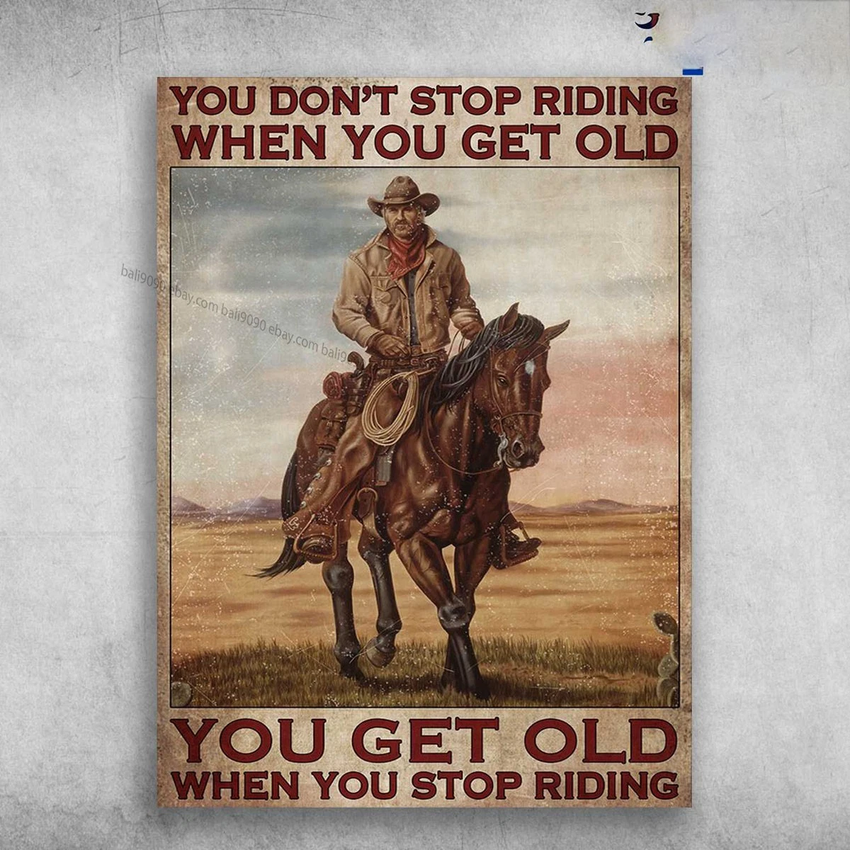 Old Cowboy, Horse Riding - You Don't Stop Riding When You Get Old, You Get Ol... Premium Matte posters ( No Framed ) Design & Printed in the USA Matte edge-to-edge print on 200 GSM paper Multiple sizes: 11x17, 16x24 Inch Fingerprint and smudging resistant Shipped in well-protected cardboard tube packaging For indoor use SHIPPING On average, merchandise is produced and shipped from our facility 2-3 business days after purchase. Standard shipping/transit times apply (1-7 days for domestic and 4-15 days for international). Replacement/return policy We stand behind the quality of our products and guarantee our workmanship 100%. Any defects or errors on our part will result in a replacement at no charge. We typically do not accept returns due to user error such as incorrect selection of sizes, designs, colors, etc.