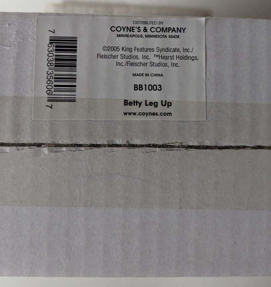 Please ask any questions before making the purchase. (Area H2) I offer discounts on shipping on multiple orders. Box/packaging may show some storage wear. Extremely Rare Coyne's & Co. BB1003 Betty Boop Betty Leg Up NOS. S/H FOR THIS ITEM WILL BE $15.00 IN THE STATES AND WILL INCLUDE DELIVERY CONFIRMATION. ALL SHIPPING IN THE STATES WILL BE DONE USPS, FIRST CLASS OR PRIORITY! WILL SHIP WORLD-WIDE.