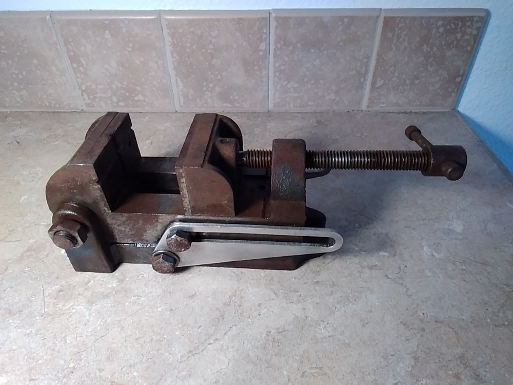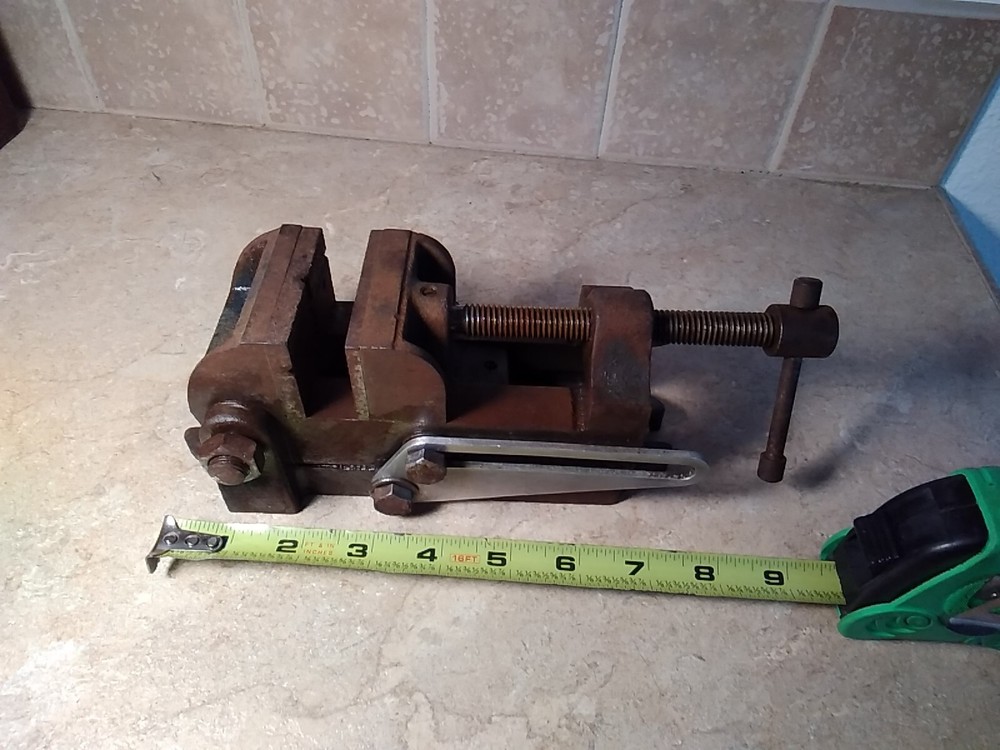 The vintage Sears Craftsman tilting drill press machinist vise has 2-1/2" jaws and is made in the United States. It is a collectible tool in the carpentry and woodworking category, featuring the Craftsman brand and being a vintage original piece. Toolbkt1