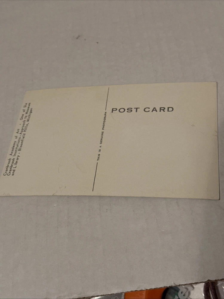 This is a set of three vintage black and white postcards featuring Cranbrook Academy of Art in Bloomfield Hills, Michigan. The cards are original and unposted, and were likely produced between 1900 and now. They depict the art school and its surroundings, and are a great addition to any collection of topographical postcards. Please ask questions before bidding and please look at pictures Thank you and have a great day