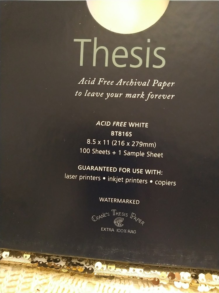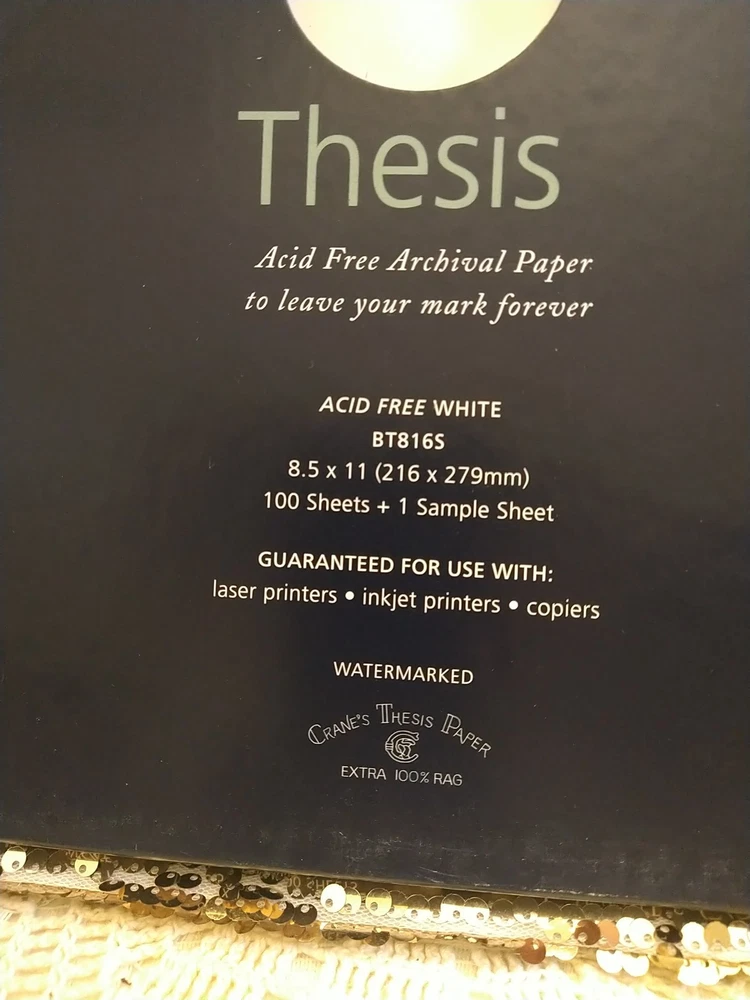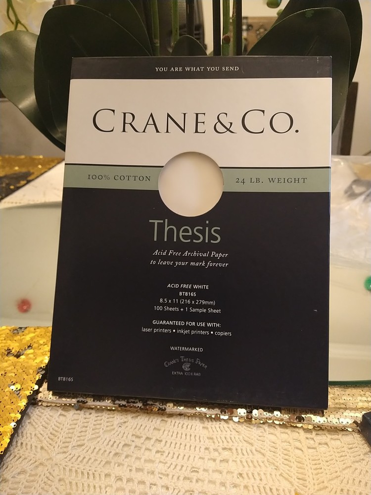 Brand New Paper sealed in plastic.Vintage Crane's Acid Free 100%COTTON Thesis Paper is a high-quality product ideal for professionals and students needing premium printing paper. Made by Crane & Company, this thesis paper features a classic white color and is designed to be acid-free, ensuring preservation of documents for years to come. With a generous 100 sheets per pack and a sturdy 24 lb weight, this paper is perfect for producing professional and scholarly documents with crisp text and vibrant images. Ideal for use in printers and copiers, this paper is a reliable choice for creating top-notch print materials.