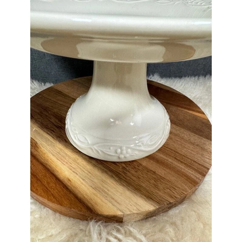 This exquisitely delicate, cream-colored cake stand is ideal for showcasing your freshly made treats. It's perfect for cakes, pies, tea parties, or any occasion that calls for an extra touch of elegance. In perfect condition