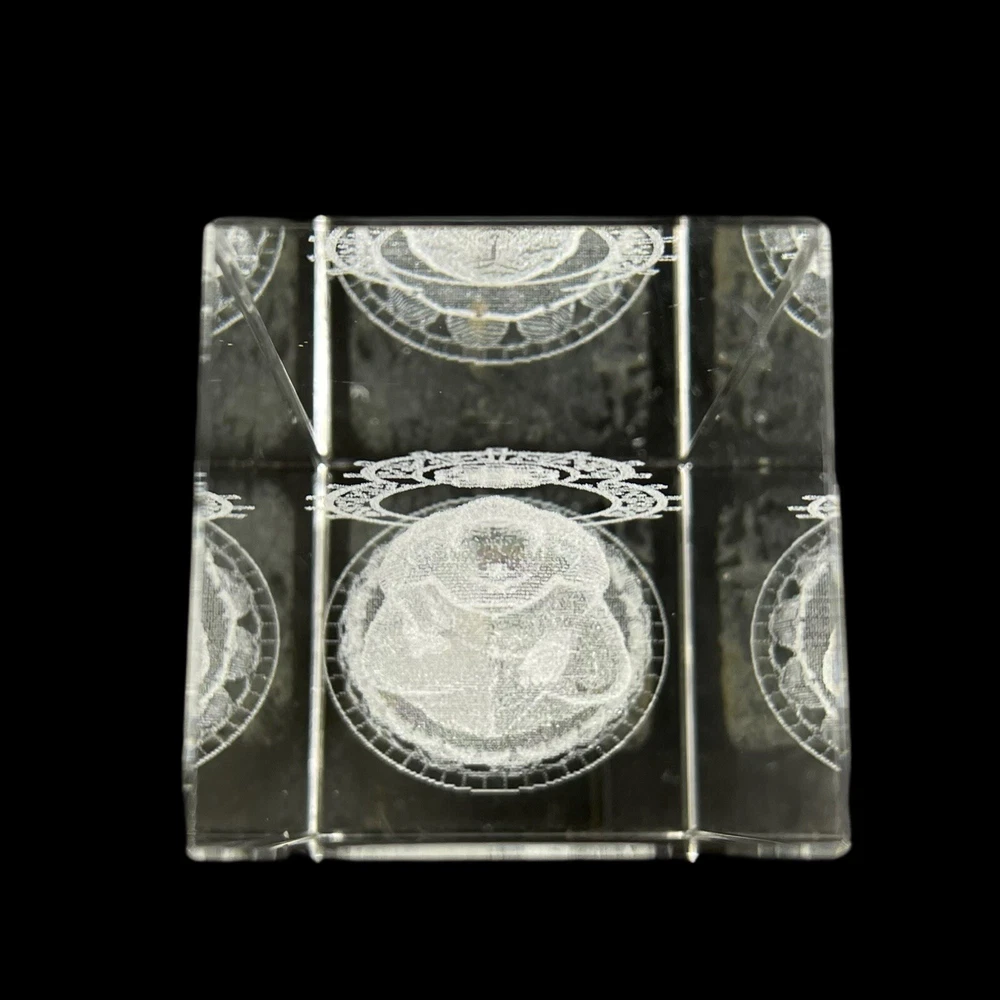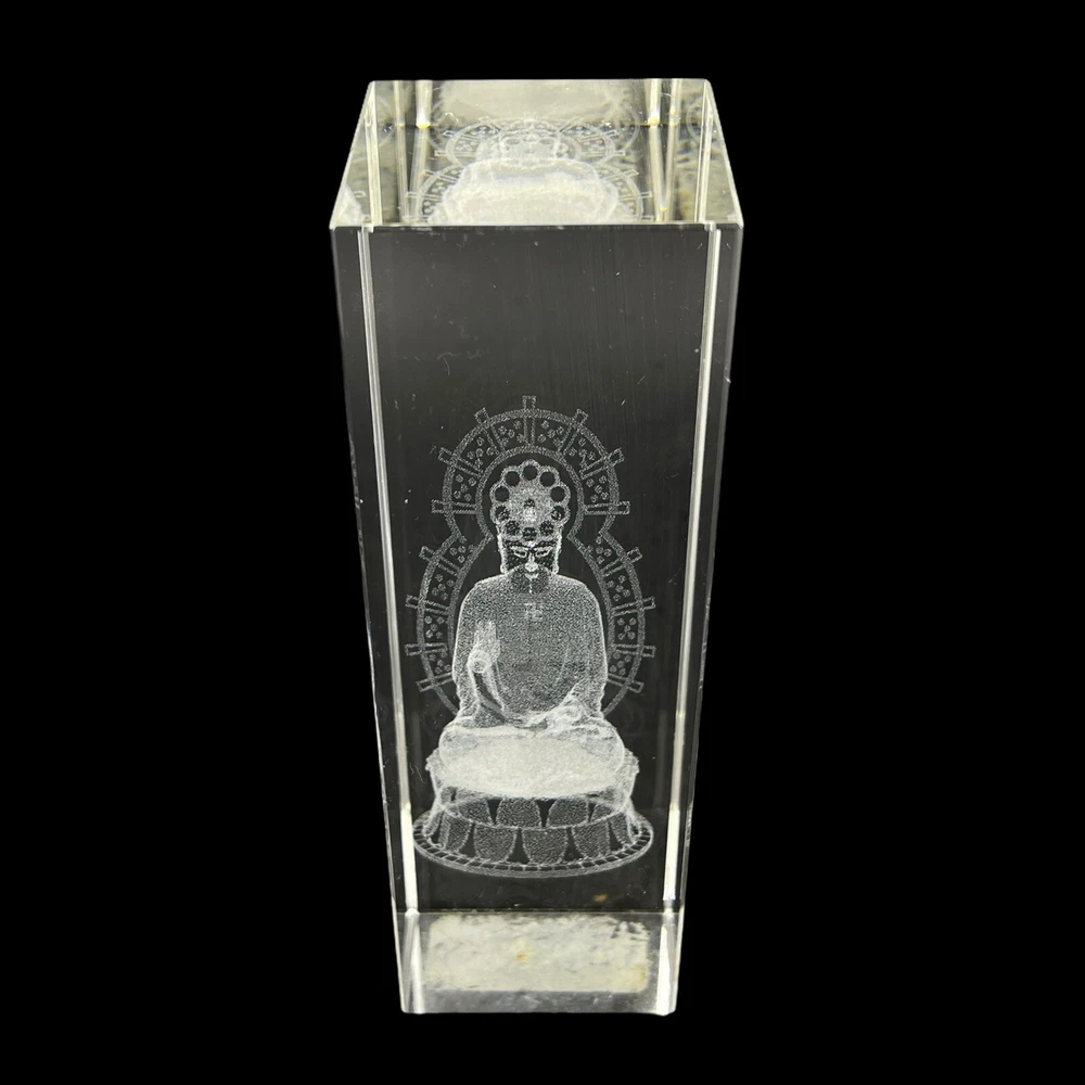 Vintage Crystal Glass Buddha Paperweight Laser Etched 3D Meditation 5 3/4" Tall 1 3/4" x 1 3/4" and 5 3/4" tall.