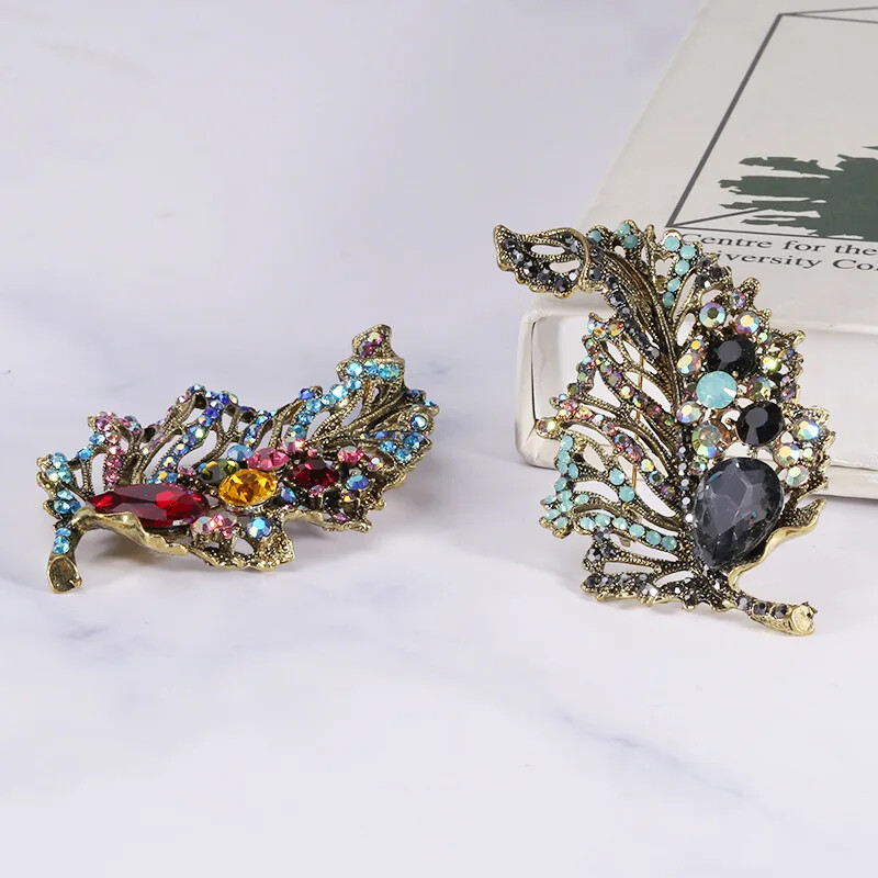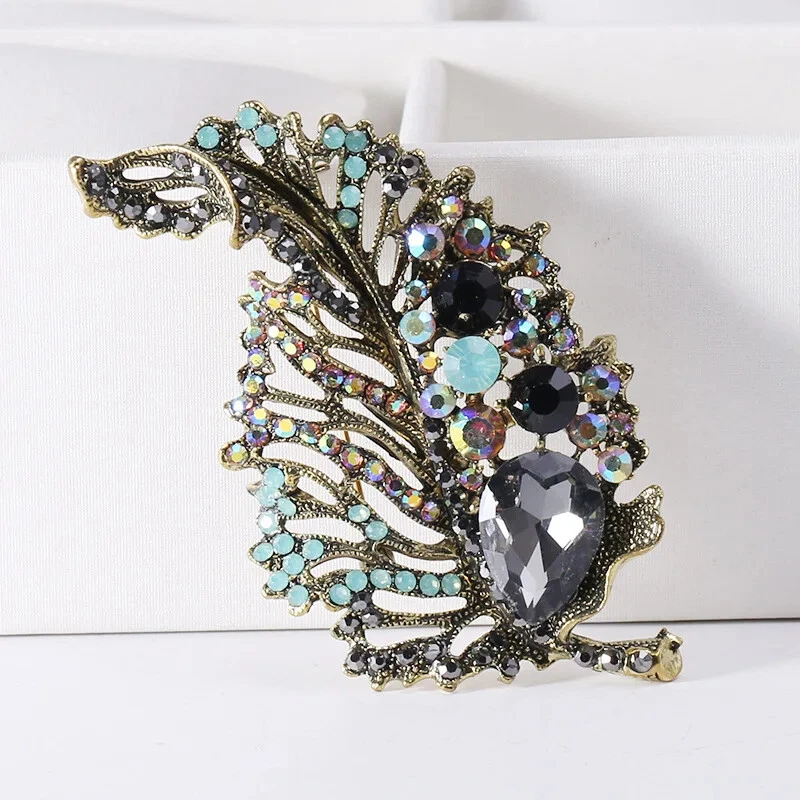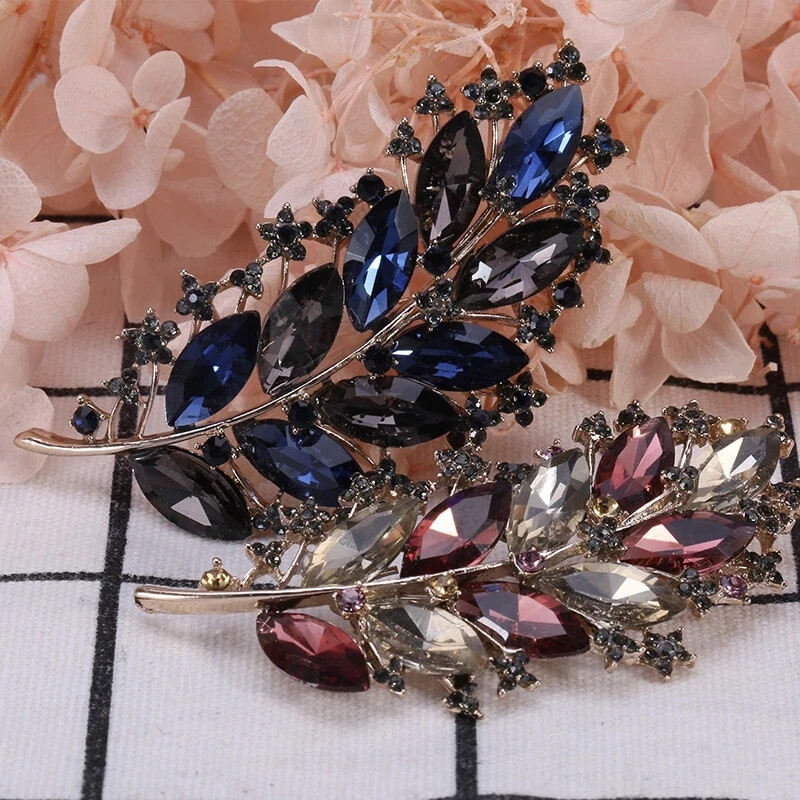 Vintage Crystal Leaf Brooch for Women Wedding Party Floral Pin