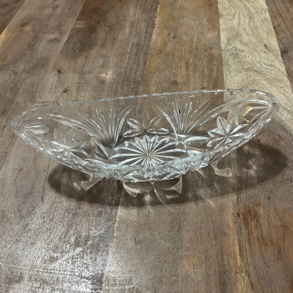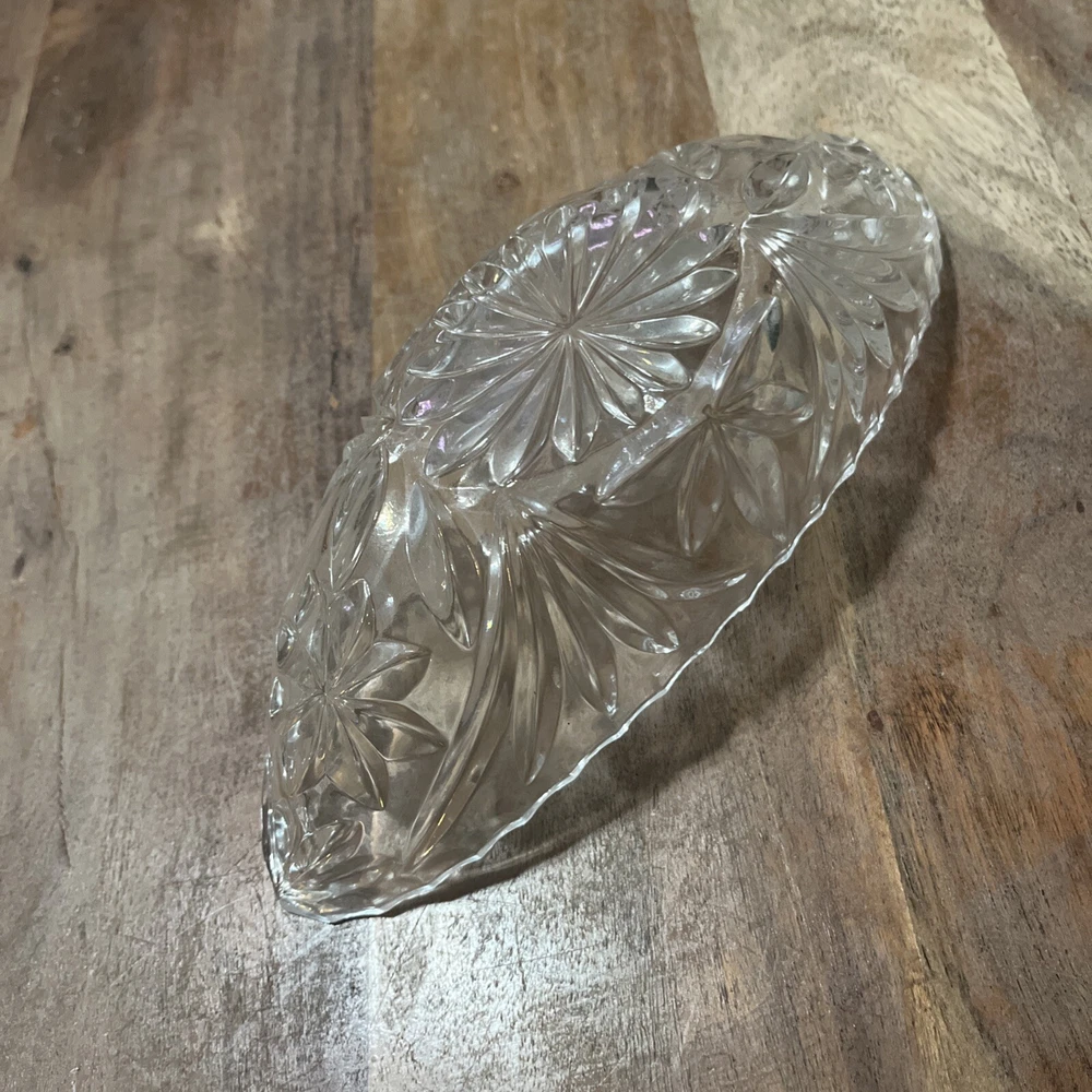 Add a touch of elegance to your dining table with this vintage Adriana Pickle Relish Dish. Made of 24% lead crystal, this dish is a perfect addition to your collection. The dish is beautifully crafted in West Germany. The dish is made of high-quality crystal and is perfect for serving pickles, relish, or any other condiment. The unique design and intricate details of this dish make it a great conversation starter. Whether you are hosting a dinner party or having a family meal, this dish is sure to impress your guests.