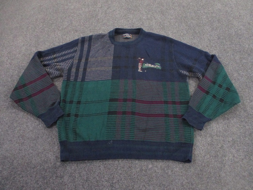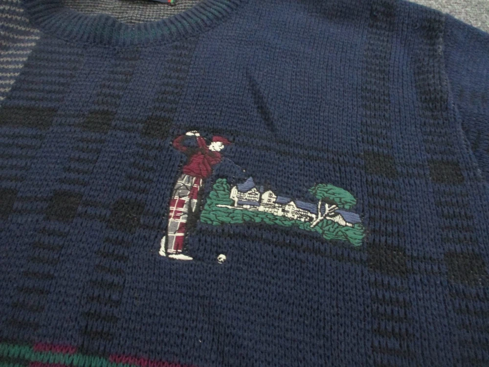 $ 9.51Vintage St Croix Sweater Mens Sz Large Blue Pink Textured Striped Geometric 90s